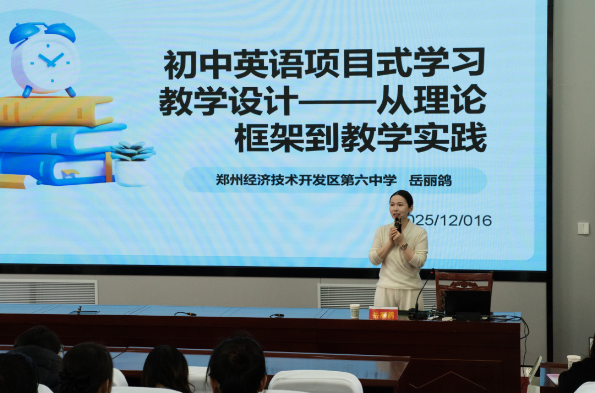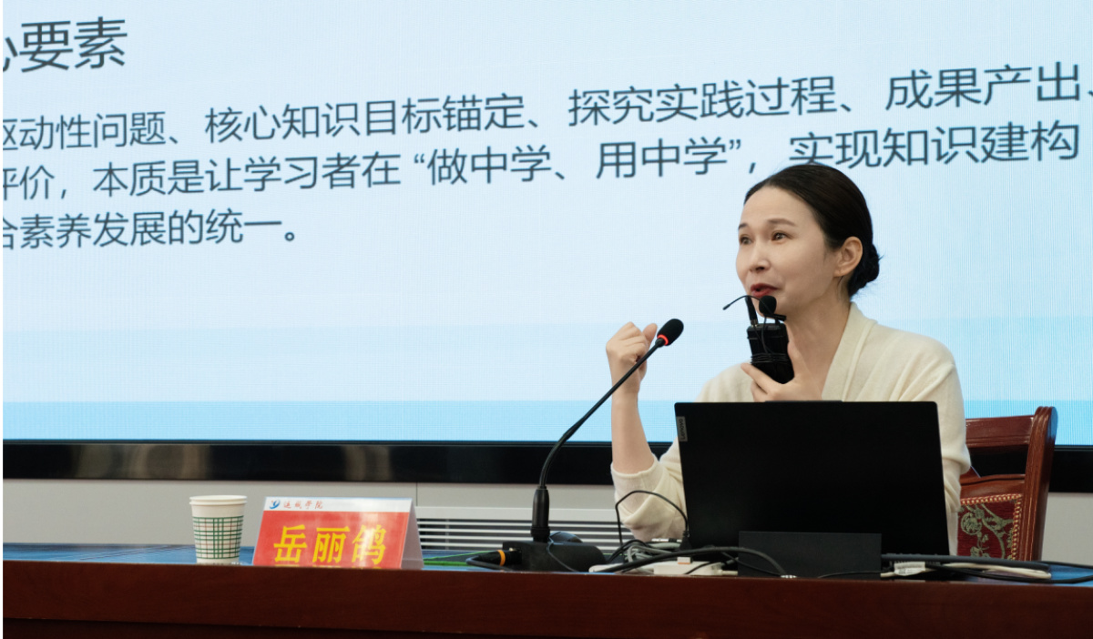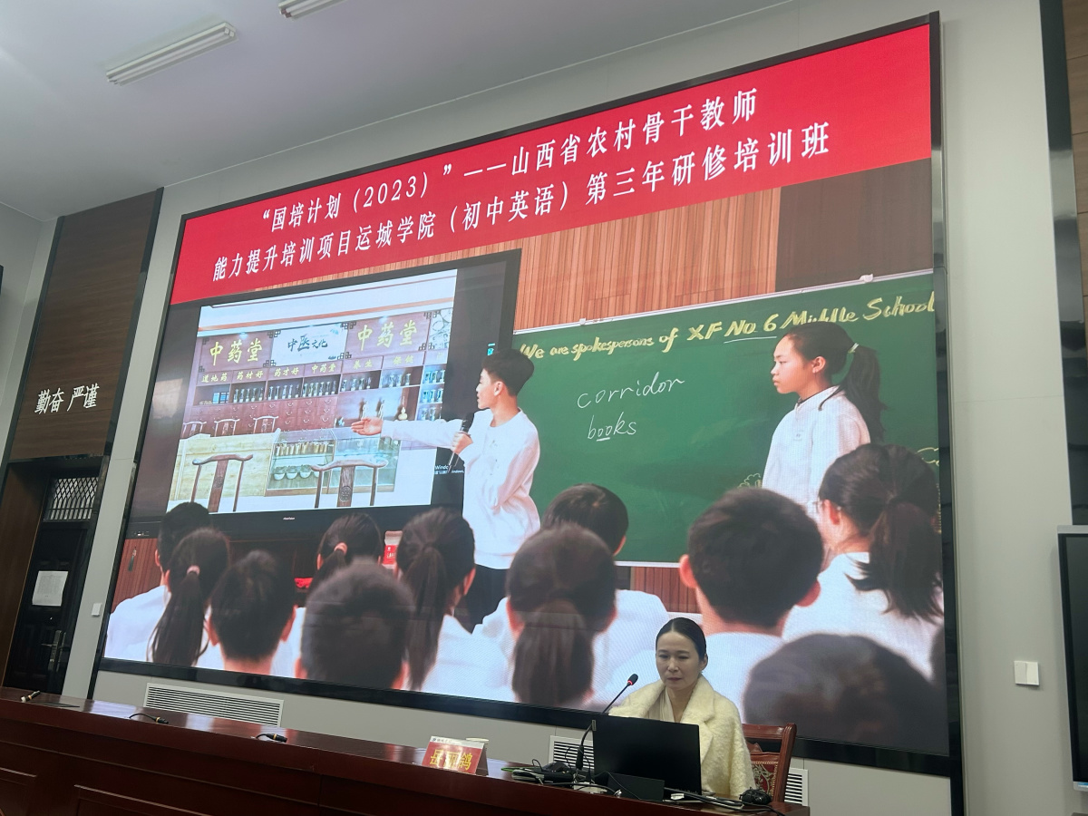 2025年12月17日下午,中原名师、郑州经济技术开发区第六中学党支部书记、校长岳丽鸽应运城学院继续教育学院邀请,走进山西运城学院,为国培计划(2023)——山西省农村青年骨干教师能力提升培训项目初中英语班(第三阶段)作题为“初中英语项目式学习教学设计——从理论框架到教学实践”的学术讲座。