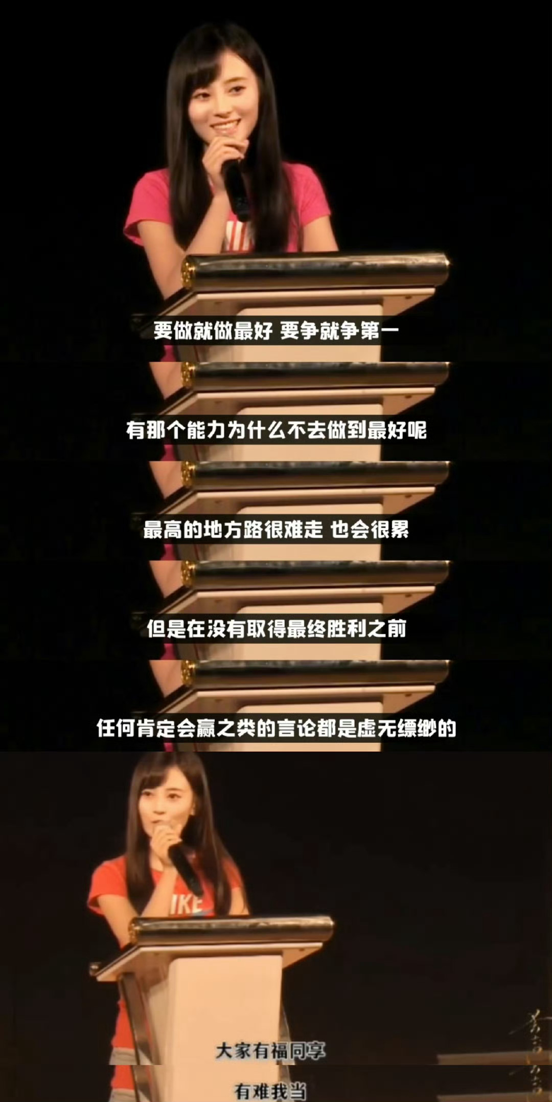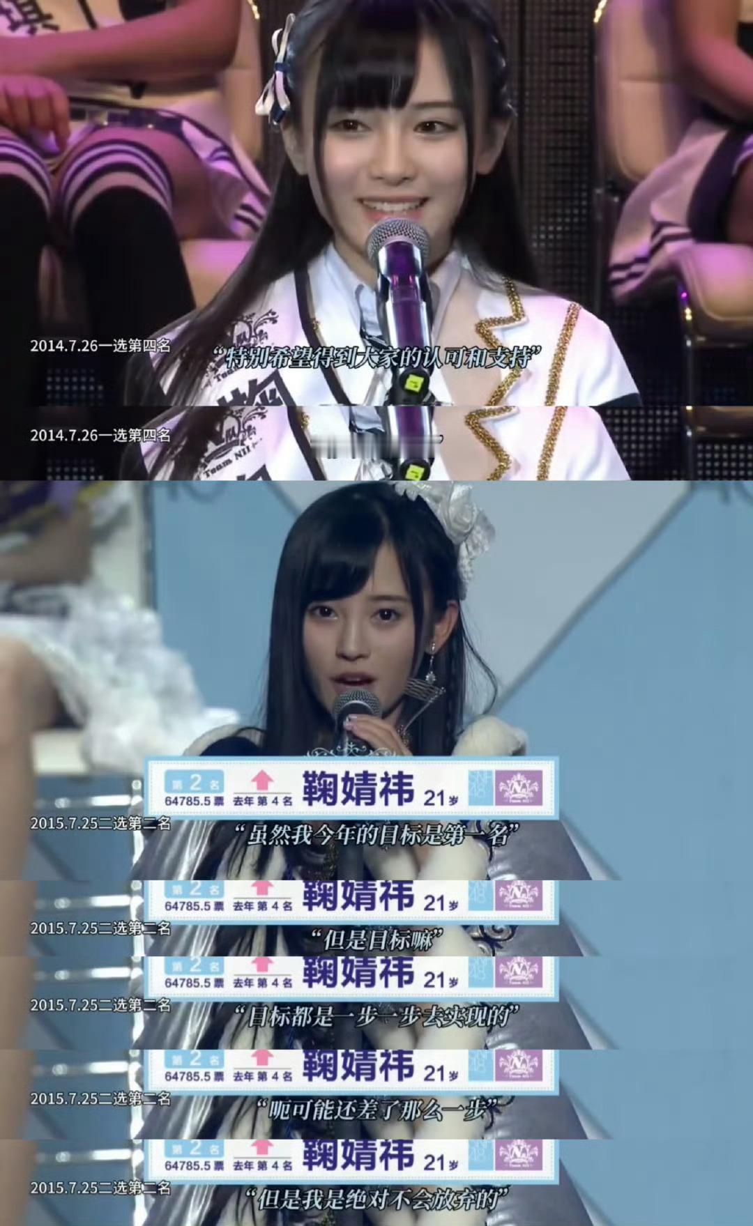 鞠婧祎鞠婧祎曾说我就是第一 “目标是第一,绝不放弃!”从转述一句口号,到喊出自己
