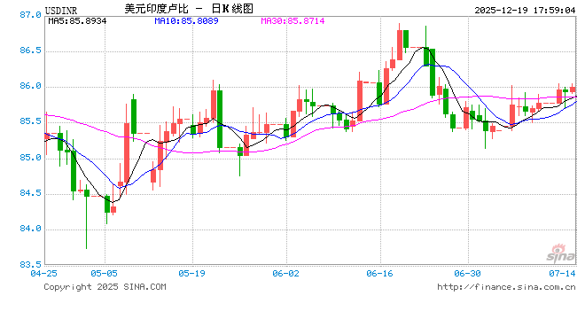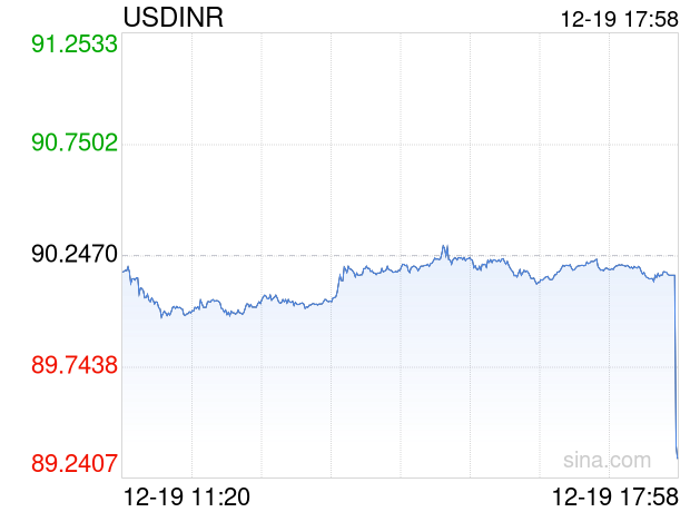 新浪外汇消息2025年12月19日,截至17时58分,外汇市场上美元兑印度卢比汇率跌破1美元兑换89.3300印度卢比。跌幅为-1.0161%