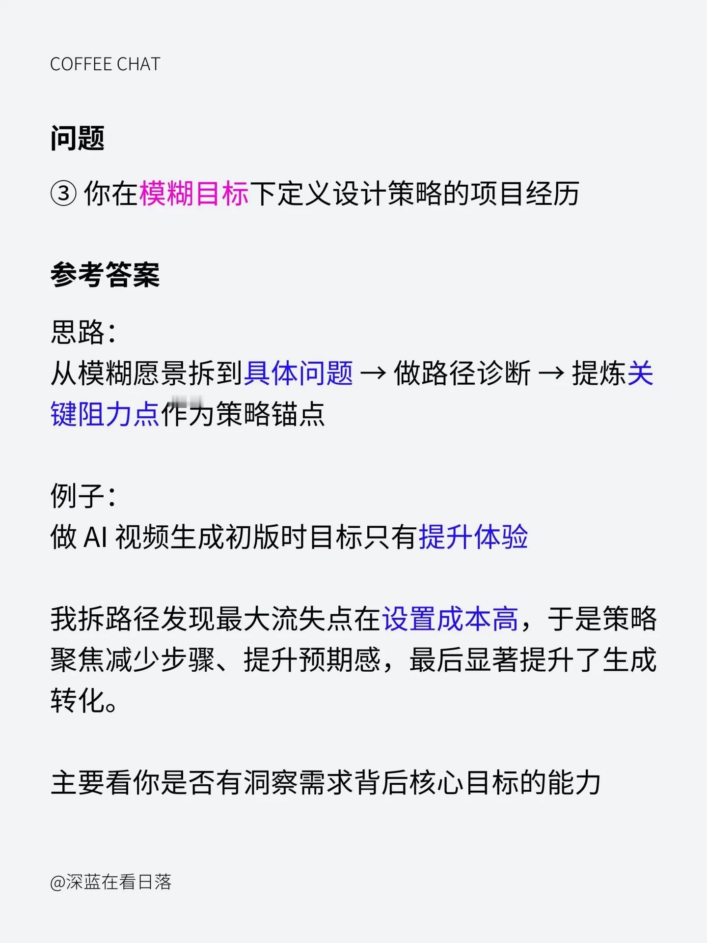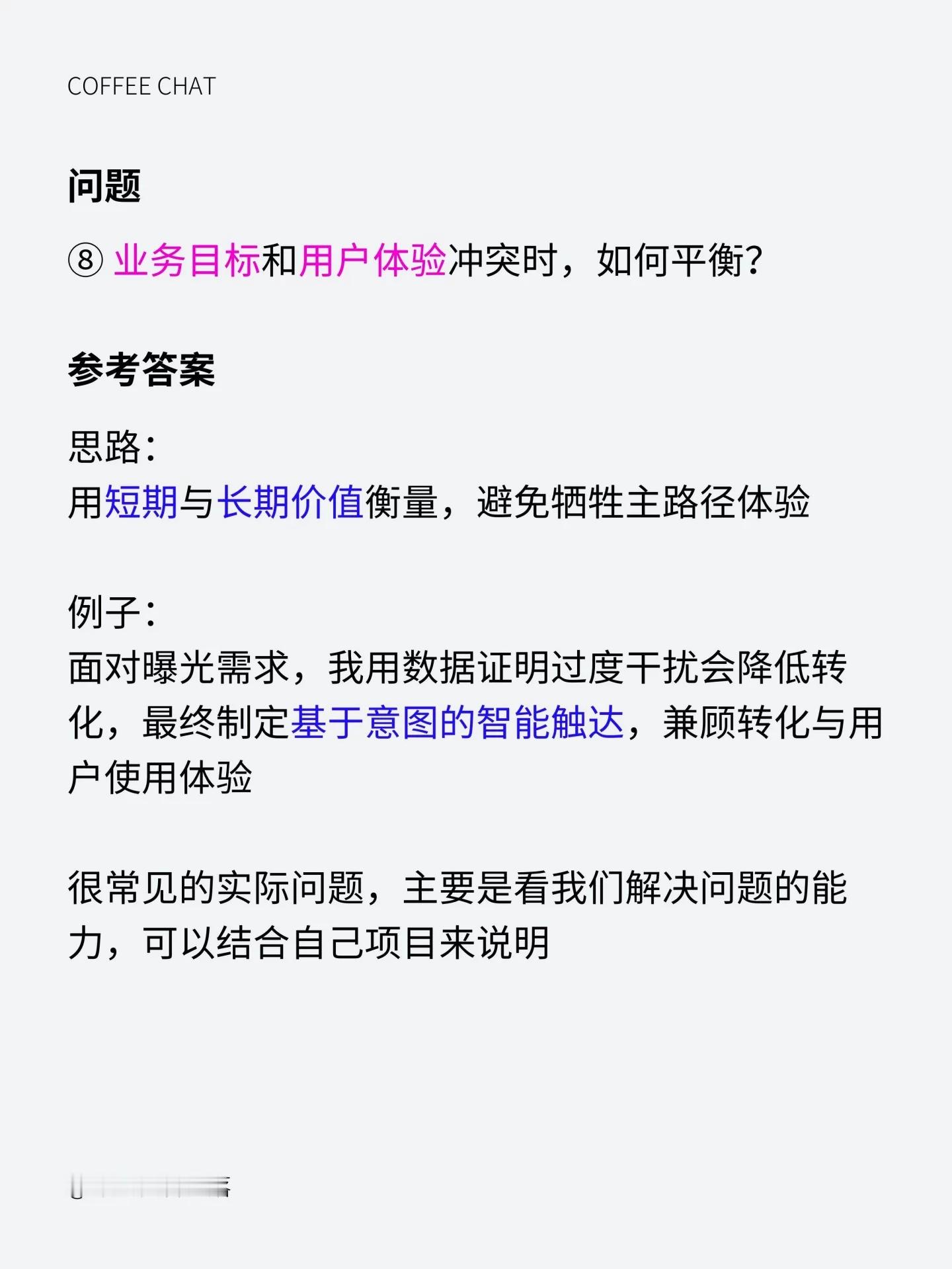 想冲大厂UX设计P7岗,面试前最怕的就是——明明有经验,却不知道怎么把能力「翻译」成面试官想听的答案!今天给大家挖到一份「P7面试终极工具包」!9个大厂高频问题+标准答案框架+真实项目例子,覆盖P7面试90%的核心场景,帮你把「经验」变成「竞争力」。
