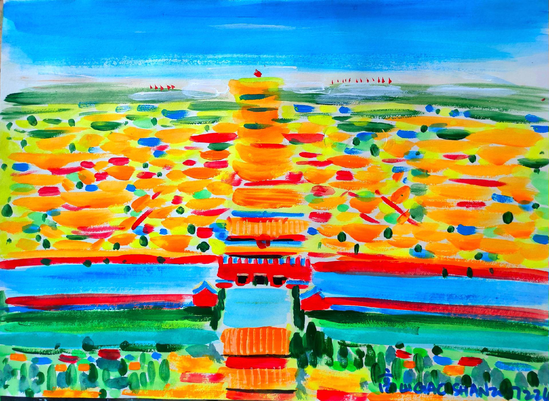 金阙紫禁。金瓦覆层楼,红墙映日流。千年龙阙在,紫气满皇州。靜心看世界带你走进画里紫禁城故宫原创插画