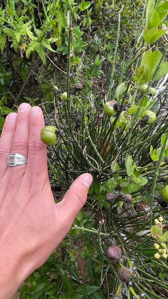 这种在当地被称为“小野生水果”(frutilla del campo)的鼠李科观赏灌木(与类似的Colletia有亲缘关系)原产于智利中部400至2200米之间的干燥灌木丛。豆绿色的茎通常无叶,在结果时特别有吸引力。果实小,直径1-1.5厘米,呈淡黄色,咖啡色。这是非常耐寒的种植,适用于美国农业部8至10区。