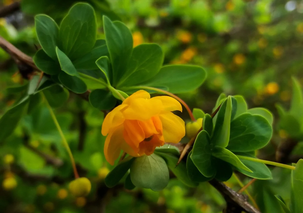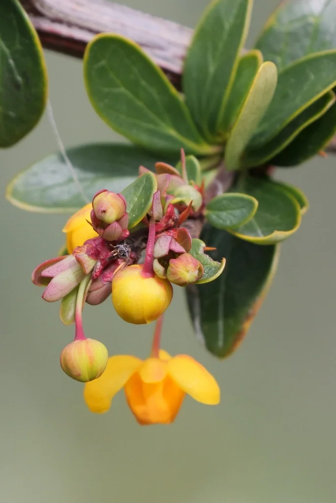 小叶小檗,是一种常绿灌木,具有简单、有光泽的箱状叶子。