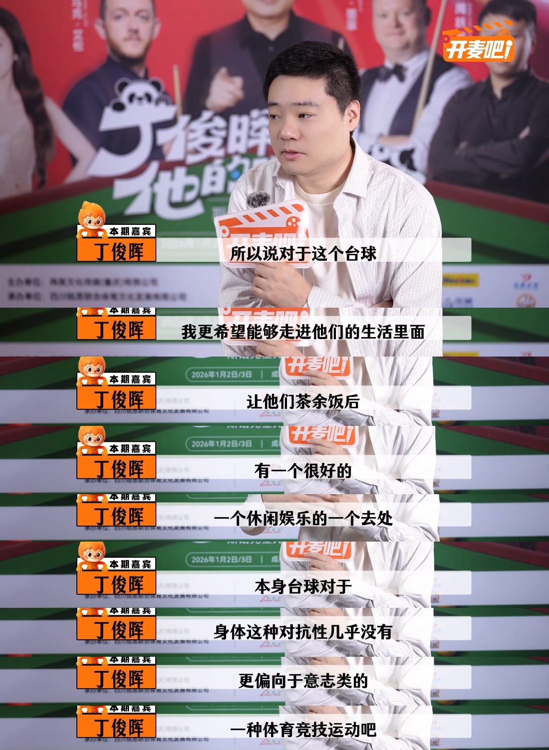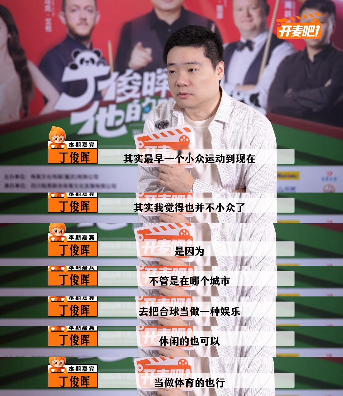丁俊晖说斯诺克不再小众丁俊晖建议年轻选手专注事业丁俊晖对后辈的叮嘱好真诚!既肯定台球从小众到大众化的发展,也提醒年轻选手别浪费精力,专注事业才是正解。他眼里的台球,是兼具竞技与休闲的生活方式,这份通透太圈粉!