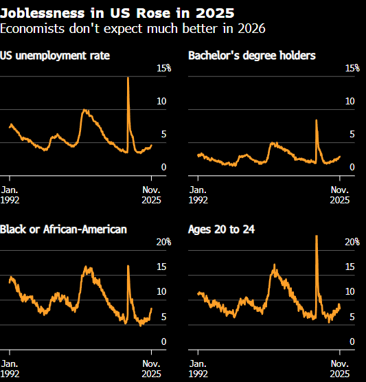虽然经济学家表示,美国经济并未陷入衰退,但对于许多求职者来说,2025年下半年很可能已经感觉就像是在衰退之中。在从6月到11月的五个月里,失业率上升了0.5个百分点,达到4.6%,这种情况在经济下行周期之外非常罕见。