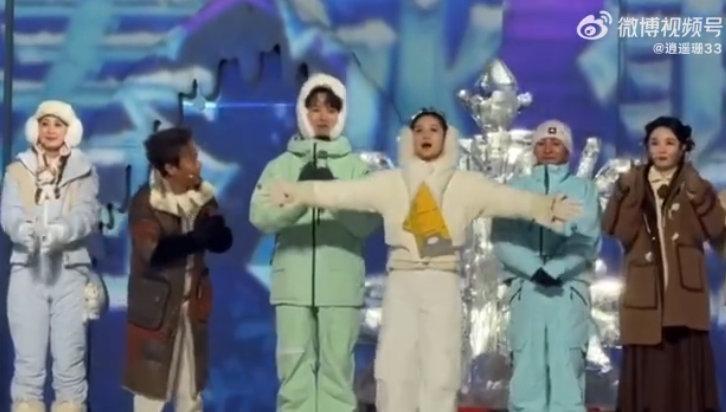 谢娜冰上还没热身就热了 笑不活了呀!谢娜于《长春冰雪之夜》南北对抗赛第一轮,装备