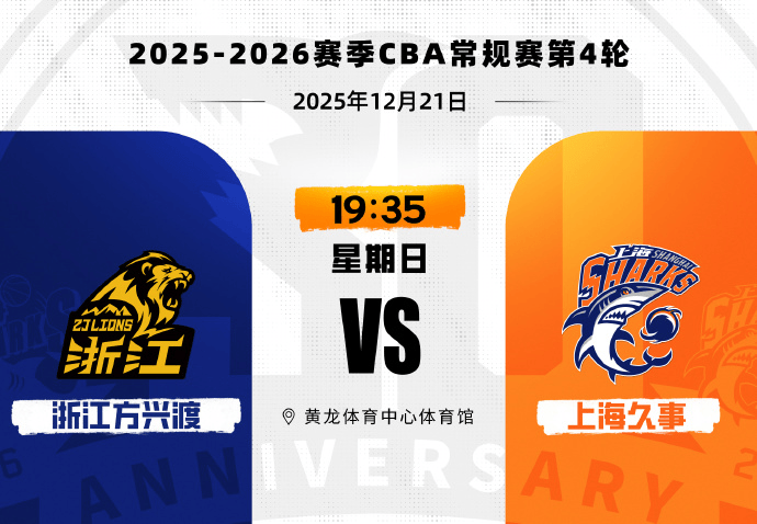 2025年12月21日,2025-2026赛季CBA联赛常规赛第4轮,上海久事客场挑战浙江方兴渡。