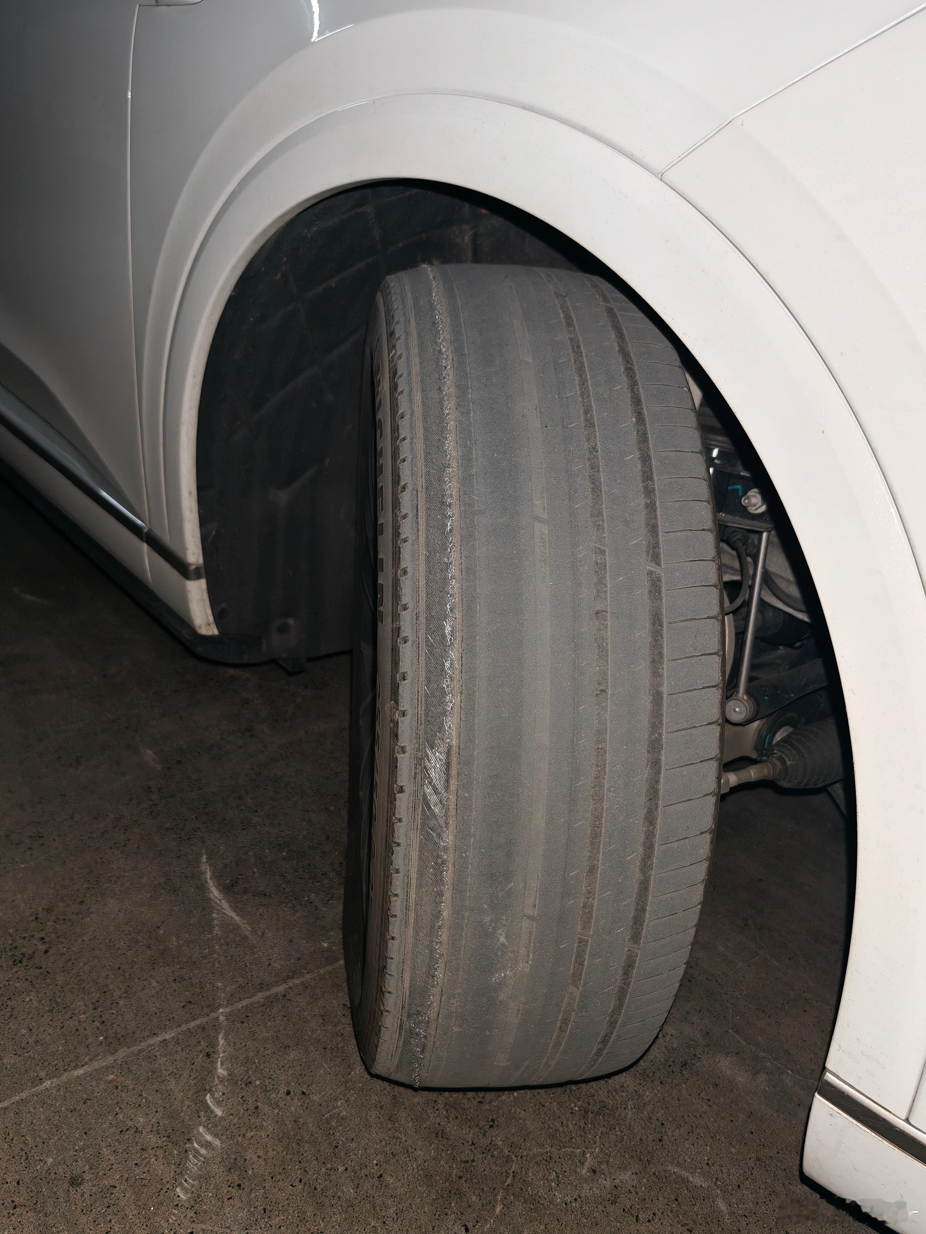 没事千万别做四轮定位,图是群里一位车友感觉跑偏跑去做定位,现在1万公里出头,喜提光头胎。