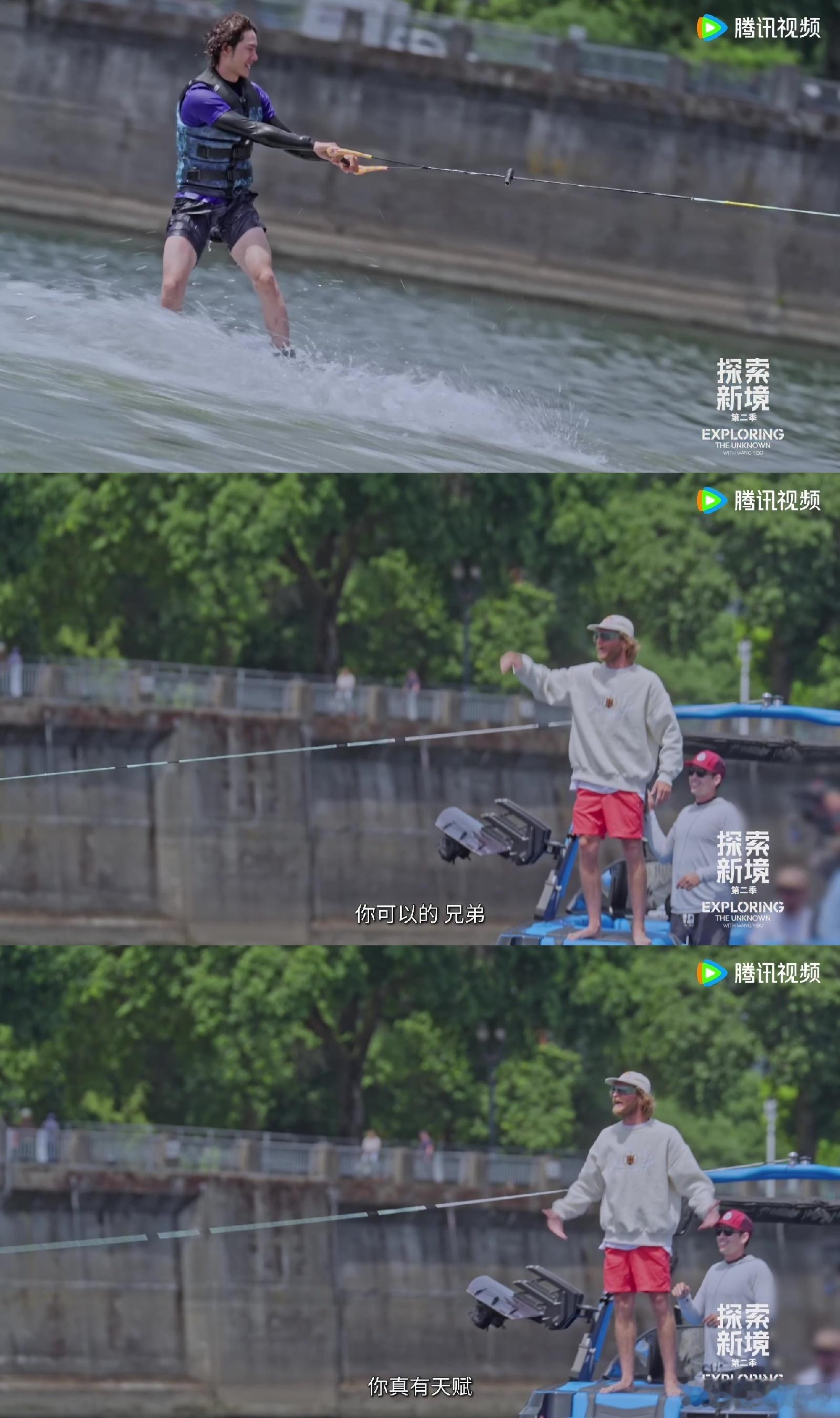 有一种速度叫王一博速度 看王一博首次接触尾波滑水,真是一种视觉享受。他从上板到触
