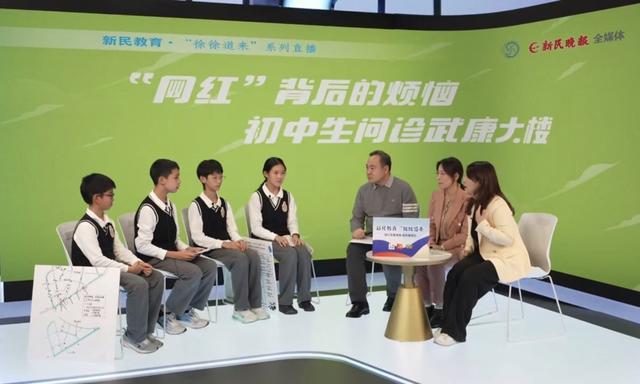 上海市南洋模范初级中学位于徐汇区天平路上,自从学校附近的武康大楼成为上海“网红”打卡点后,同学们发现,和“网红”当邻居,有自豪,也有不少“甜蜜的烦恼”。旅游旺季厕所不够用怎么办?垃圾桶分布不均怎么办?他们走进街区,广泛调研,从初中生的视角为街区治理提出建议。昨天,徐汇区教育学院思政学科教研员、徐汇区学科带头人、正高级教师王志安,南模初中政史地教研组长、思政课教师倪科嘉将和该校七(10)班学生沈笑言、虞世涛、陈晢岓、姜熠坤,一起走进“新民教育·徐徐道来”直播间,讲述了他们的发现,也探讨如何将真实的社会变成有意思的思政大课堂。
