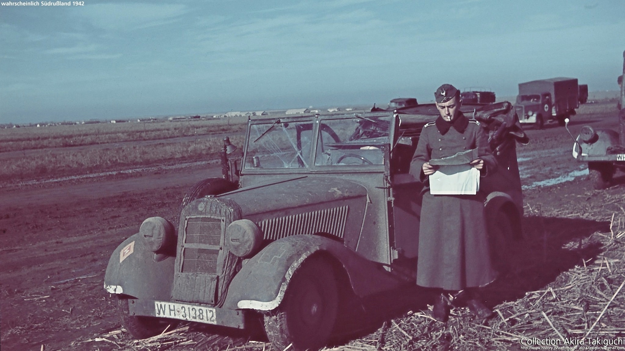 1942年,东线战场上看报纸的德军军官。