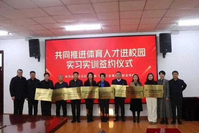 为推动体育人才培养与基础教育需求有效衔接,近日,哈市松北区教育局与黑龙江冰雪体育职业学院共同举行《共同推进体育人才进校园实习实训框架协议》签约仪式,松北区教育系统十余所中小学校及幼儿园的校(园)长代表参加仪式。