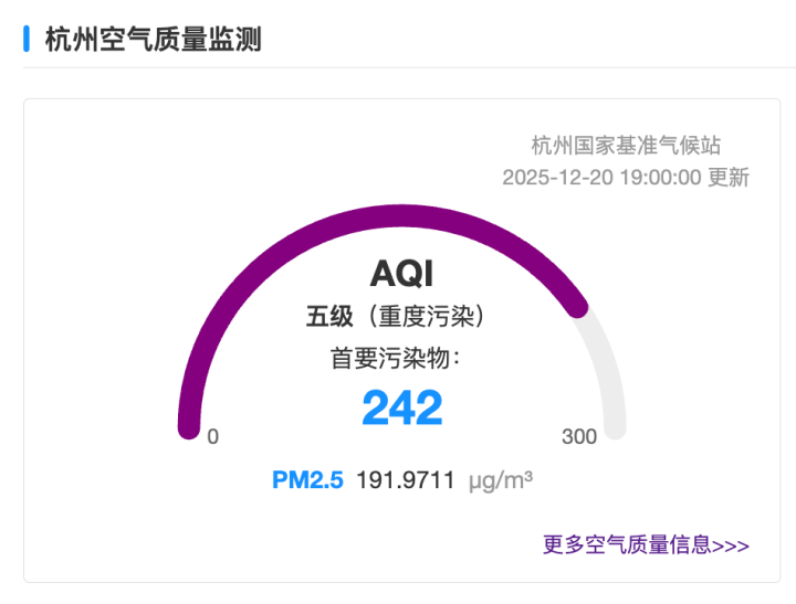 中午开始,随着冷空气的到来,杭州空气质量明显变差,不少朋友都发现,外面灰蒙蒙的。