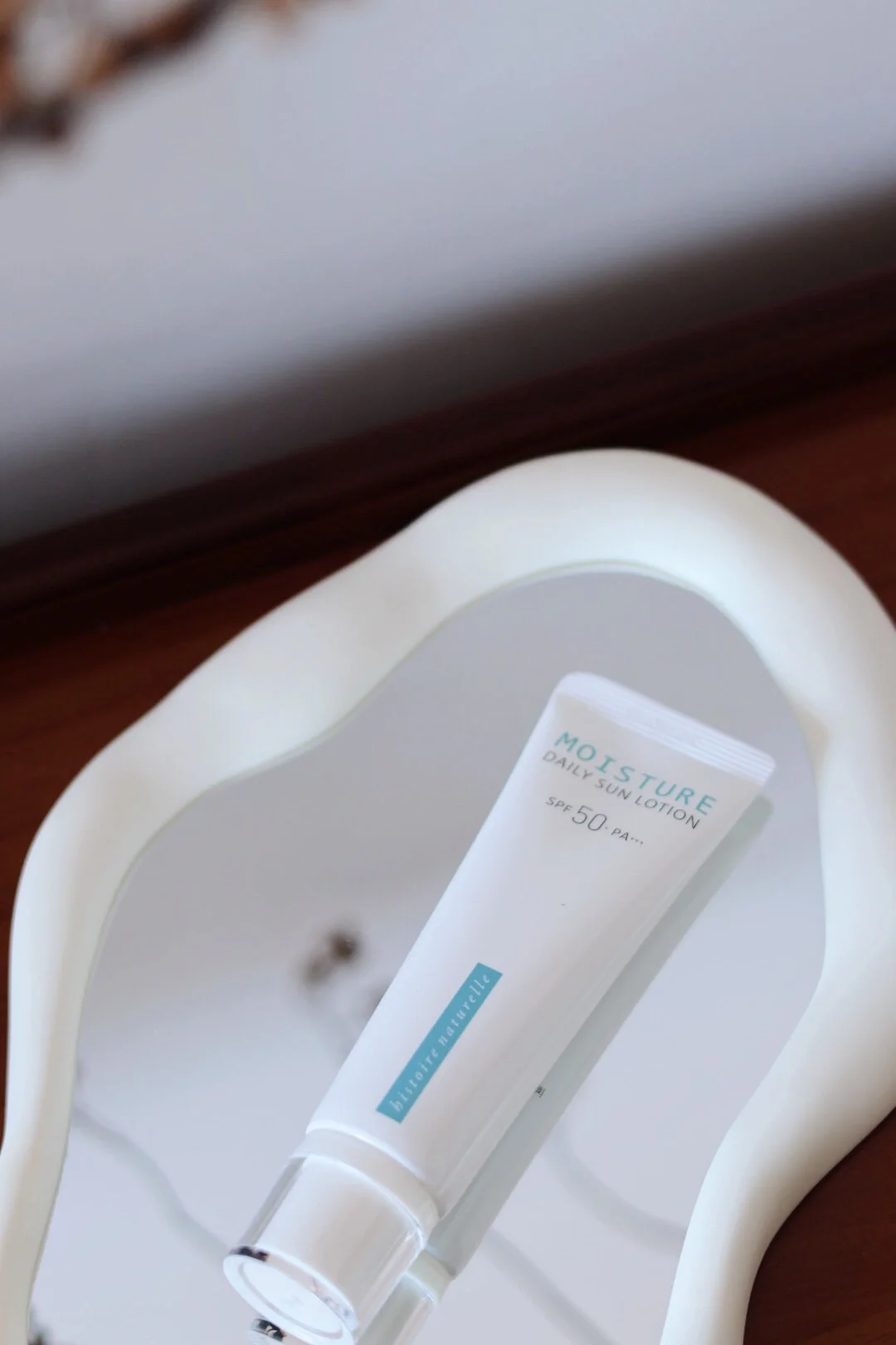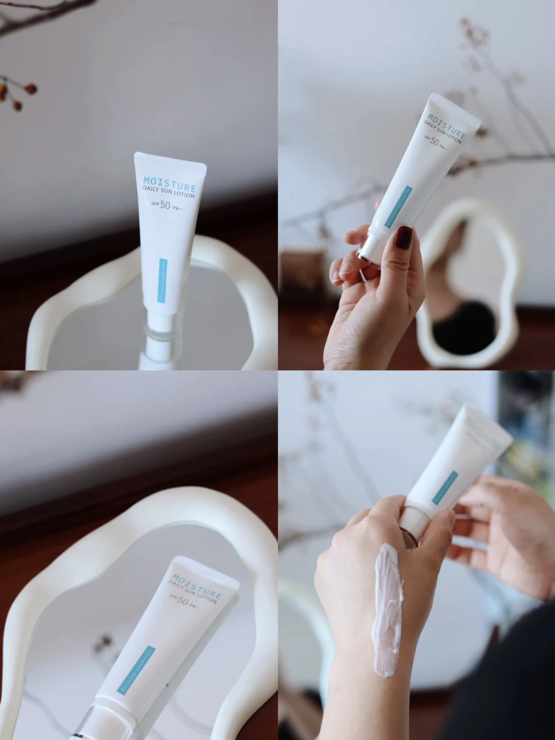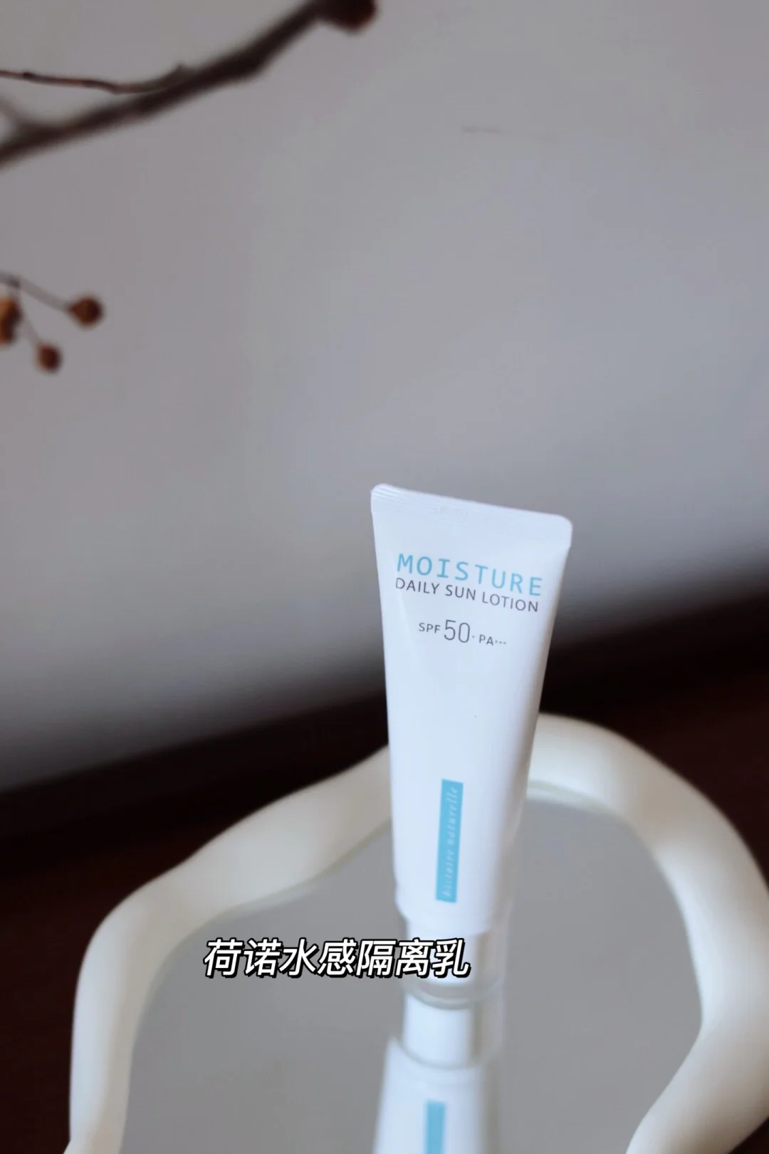 保湿,已经是大家的日常了,但千万不要忽略防晒。做好防晒才能有后面的抗衰。一直在用这款荷诺水感防晒乳,看名字就会感受到它的质地,它像乳液一样,很好推开,成膜很快,轻薄滋润。有SPA50+ PA+++完全够用。