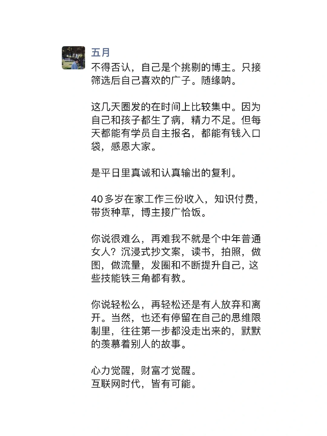 抄的文案不全是商业,销售干货,还有各种芝麻琐事、醒脑短句和生活智慧… 很多人偷偷复制她的内容去做流量做成交。