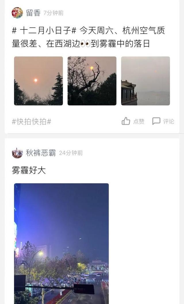 中午开始,随着冷空气的到来,杭州空气质量明显变差,不少朋友都发现,外面灰蒙蒙的。