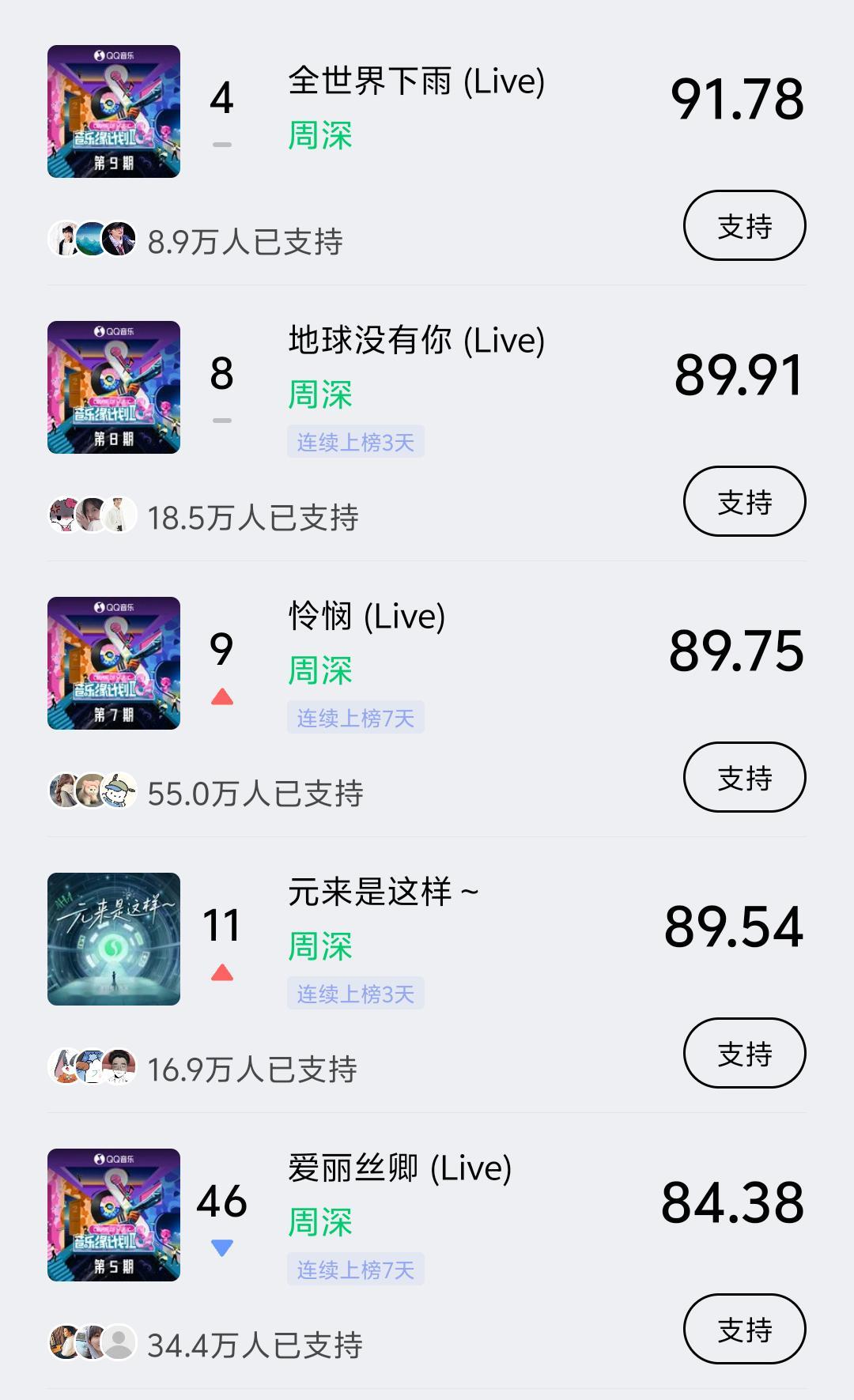 周深 📣 12.21 巅峰潮流 📣米米们下午好,每歌做6个动作路径:Q音-乐馆-排行-潮流巅峰📍重点做新歌✅《全世界下雨(live)》✅《地球没有你(live)》✅《元来是这样~》📍其他top50✅《怜悯(live)》✅《爱丽丝卿(live)》完成『支持』让更多人听到深深