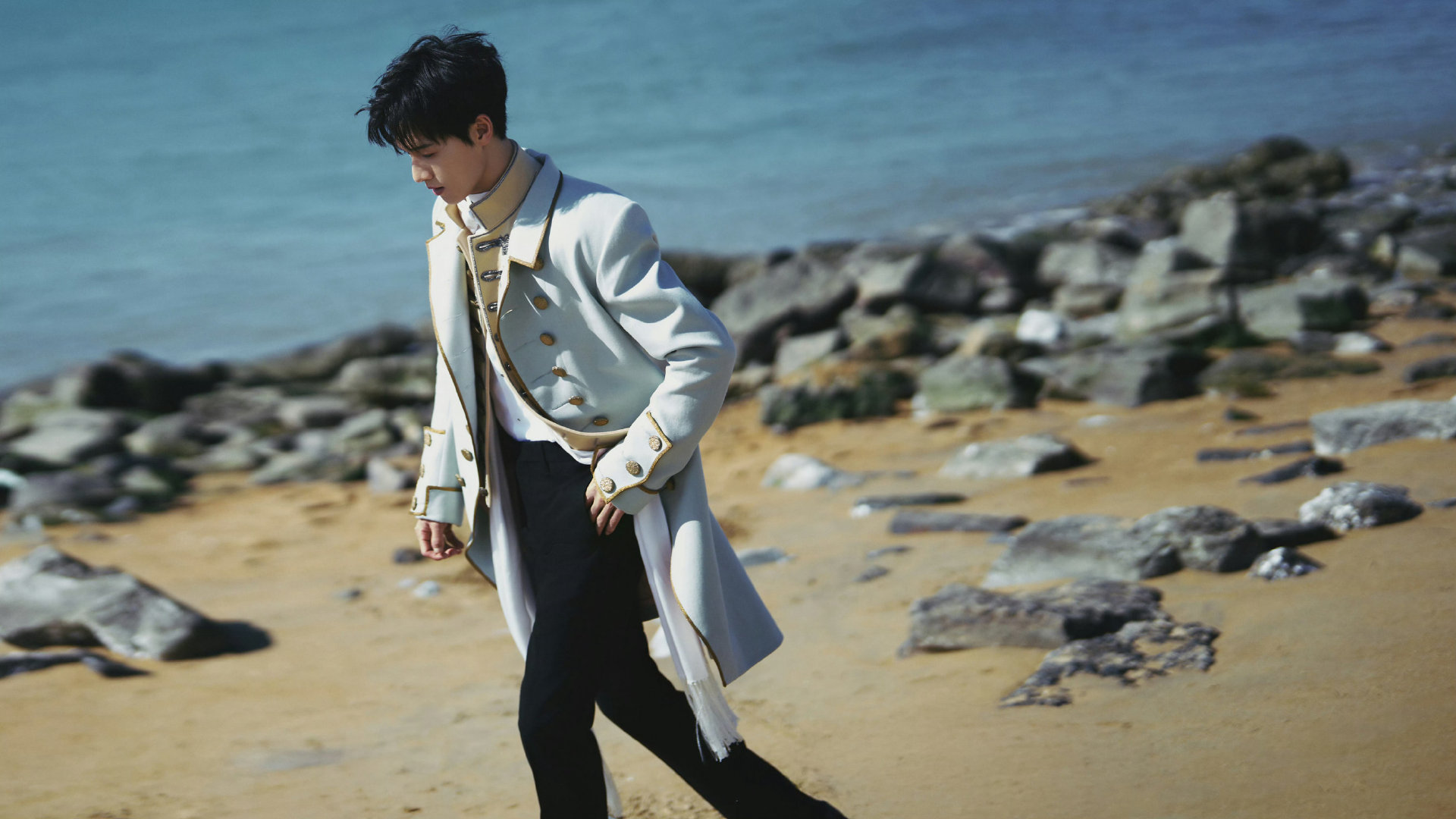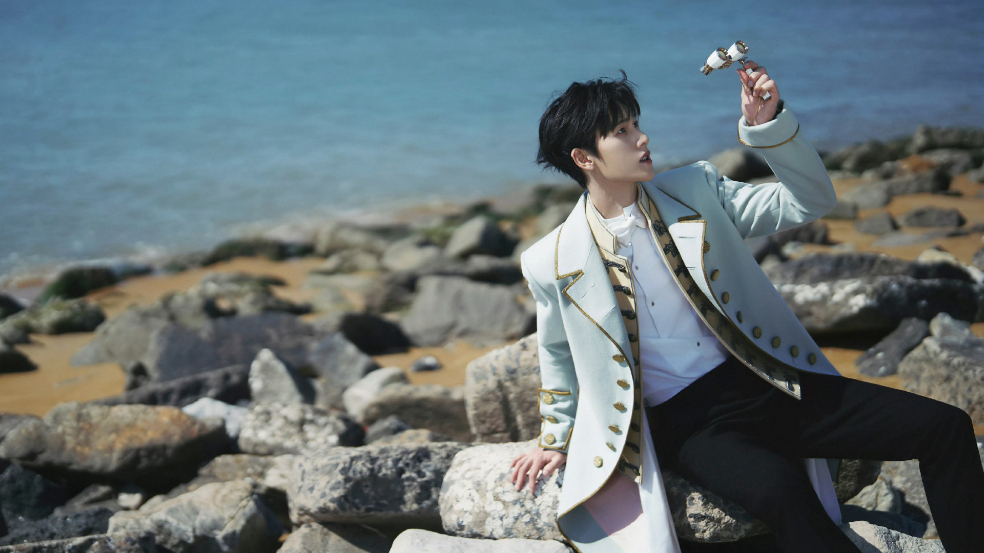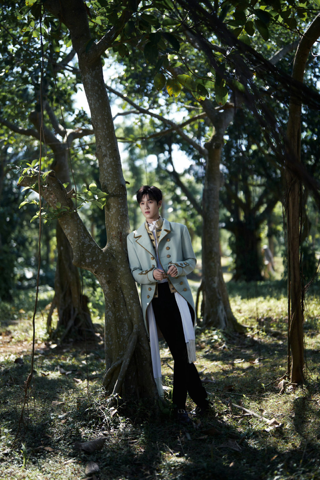 李昀锐|星光大赏造型出图,身穿Dior by Jonathan Anderson 2026春夏男装系列,一身蓝绿色宫廷风大衣,漫步于山海之中,小王子闪亮登场星光大赏红毯