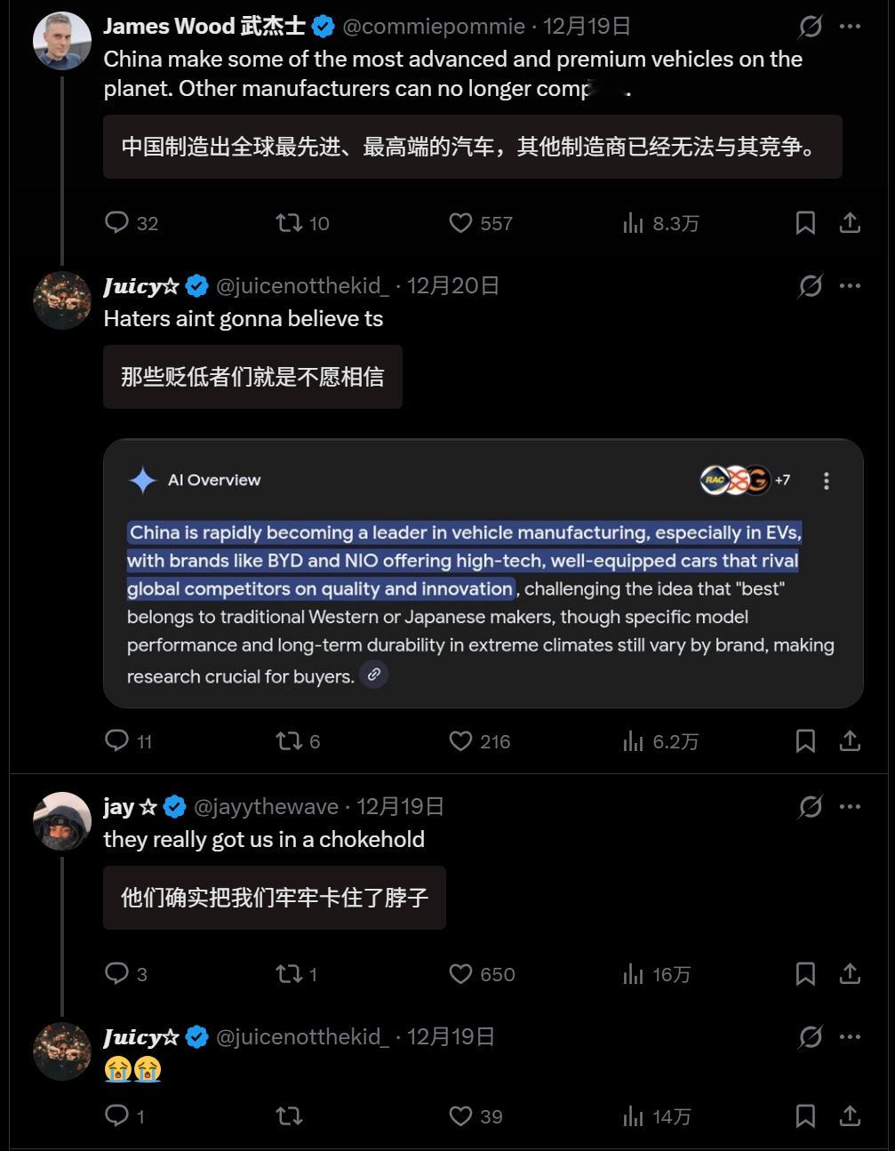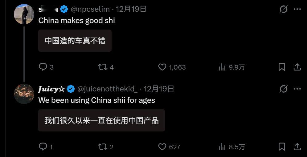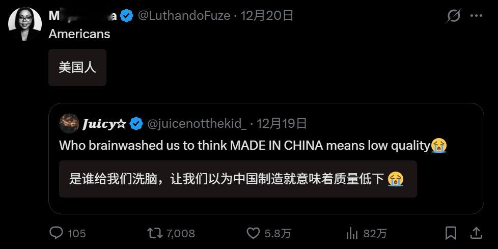 🔻感谢网友 jo 分享十万赞400万阅读海外热帖:“是谁给我们洗脑,让我们以为中国制造就意味着质量低下 😭 ?”🔻上网的老外现在也是一天觉醒七八次。热点现场海外新鲜事