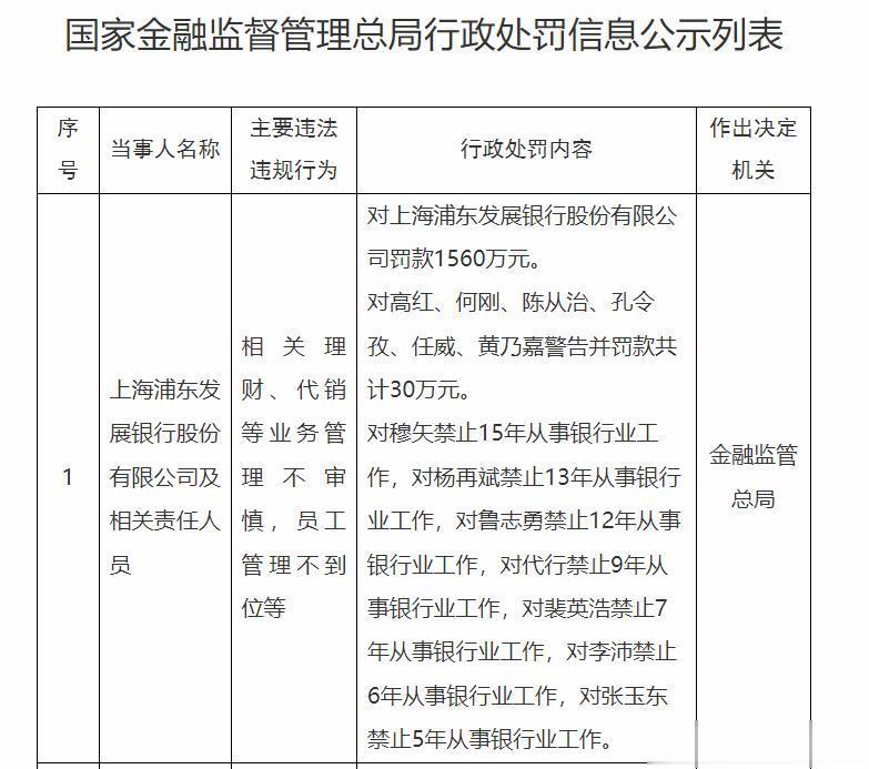 金融监管总局12月19日对浦发银行开出的1560万元罚单,连同7名从业人员5至15年不等的行业禁业处罚,犹如一记重磅合规警钟。