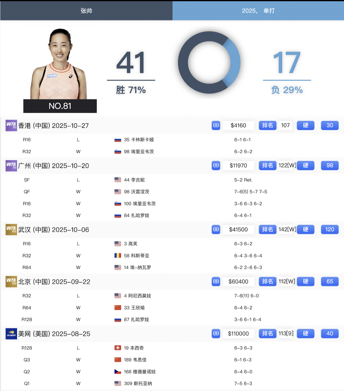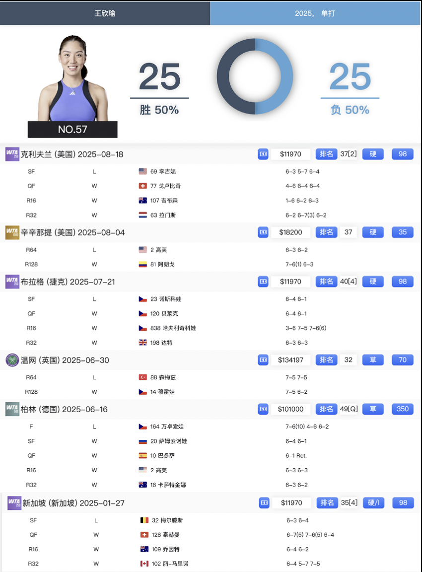 其余金花的回顾,打算一起出一个合集,主要涵盖巡回赛正赛,毕竟ITF和资格赛的转播质量不佳。希望明年大家都能齐齐反弹,把排名打回去,这样年底就可以人手都来一个专属回顾了2025中国体育填空题