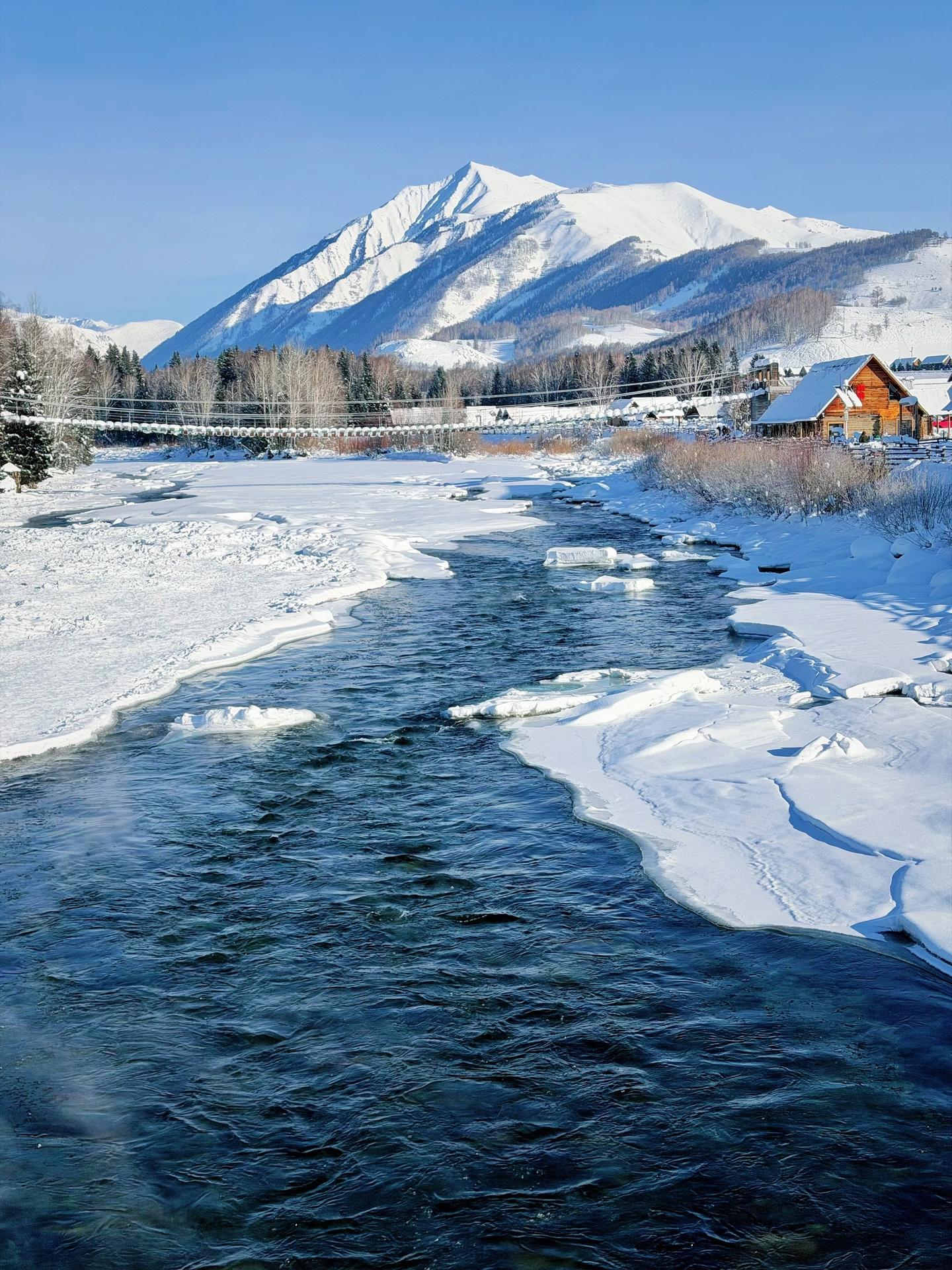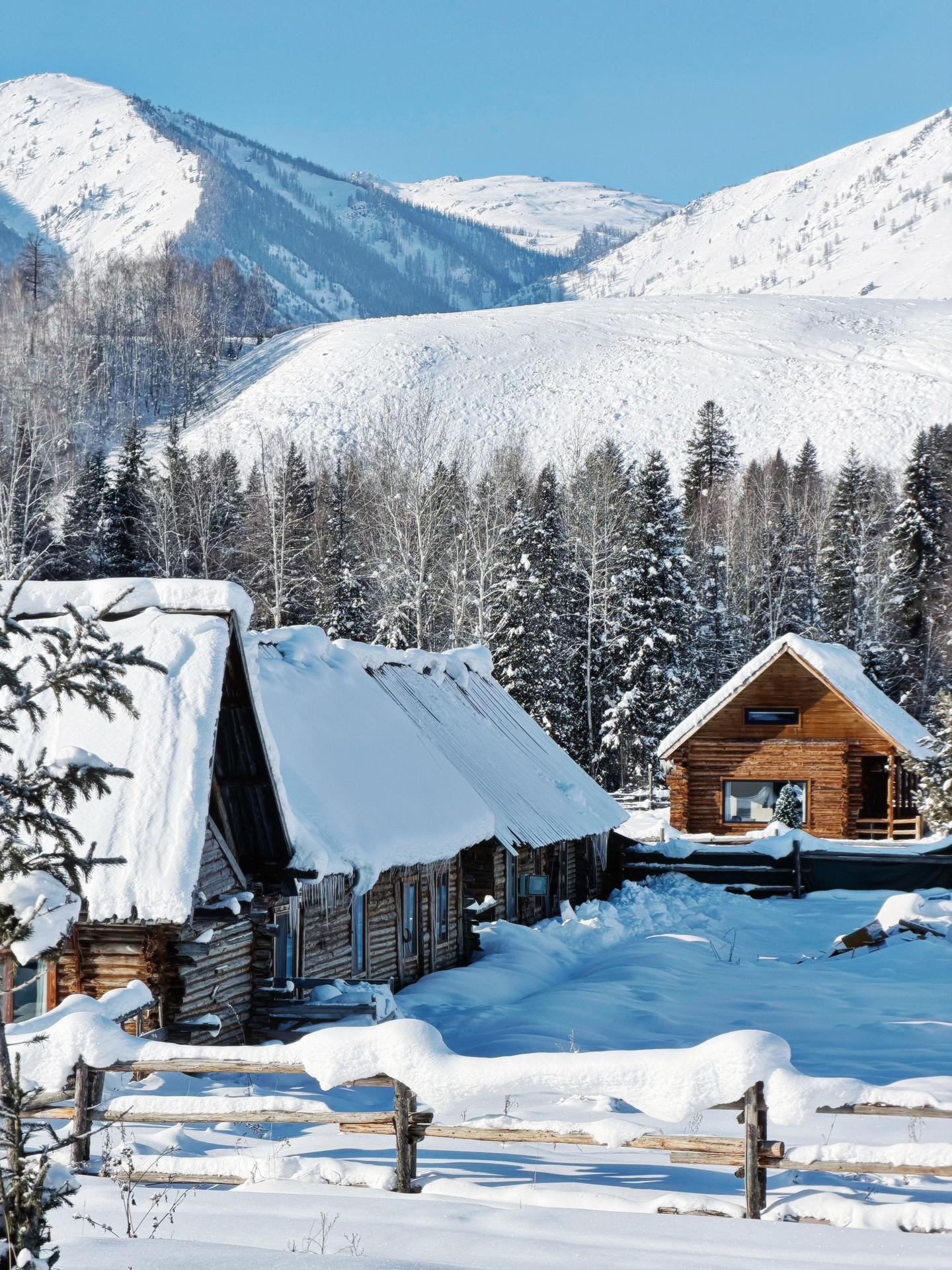 禾木的冬天美的让人窒息。 雪景,木屋,蓝调时刻,河流,漫山遍野的圣诞树...