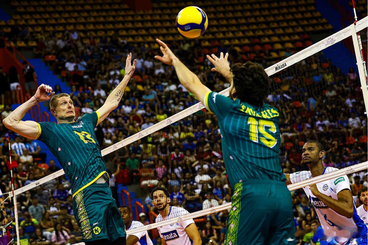 【男排世俱杯】铜牌战,波兰扎维尔切3-0零封东道主巴西雷纳塔摘铜(27-25 25-19 25-21)。扣球43-35,拦网11-2,发球6-1,失误7-17。拉塞尔16分(31扣13中5失,1拦2发),克沃莱克13分(28扣13中1失),别涅克13分(12扣8中1失4拦1发),格拉迪尔8分(4拦),恩辛6分(13扣4中1失),塔瓦雷斯3分,博拉兹1分;阿德里亚诺11分(30扣11中3失),牛顿10分(26扣10中7失),毛里西奥9分(21扣9中5失),贾德森5分,布鲁诺1分,马修斯1分。男排世俱杯 国际排坛动态