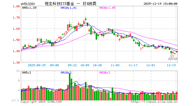 12月19日,恒生科技ETF基金(513260)涨1.89%,成交额4.89亿元。当日份额增加1000.00万份,最新份额为51.14亿份,近20个交易日份额增加2.84亿份。最新资产净值计算值为71.54亿元。