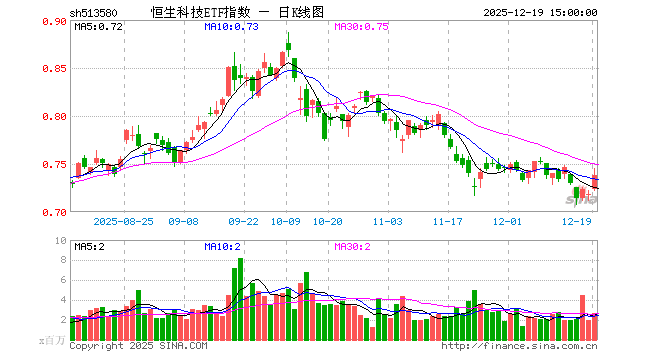 12月19日,恒生科技ETF指数(513580)涨2.79%,成交额1.92亿元。当日份额增加1000.00万份,最新份额为70.88亿份,近20个交易日份额增加2.34亿份。最新资产净值计算值为51.37亿元。