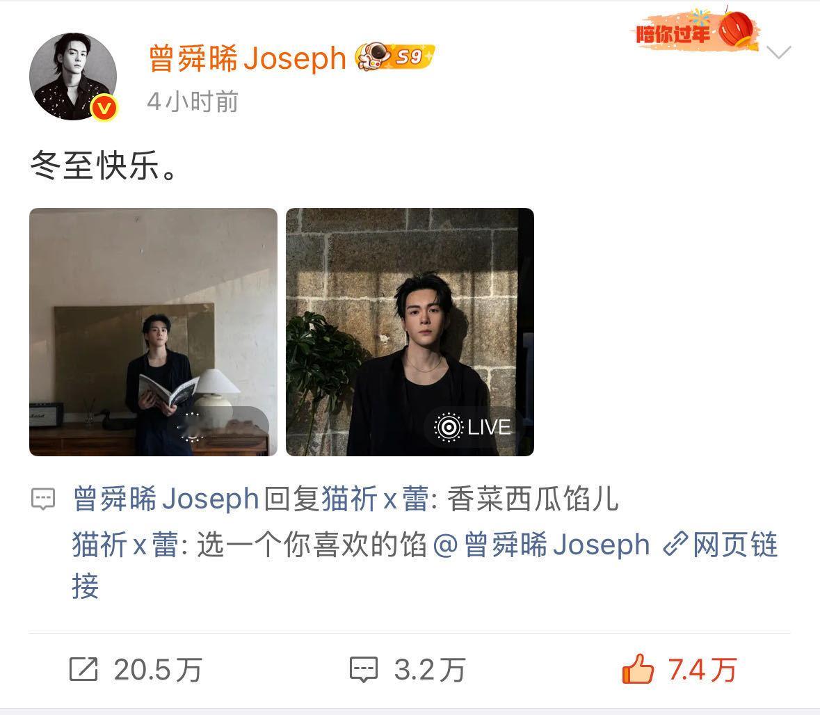 曾舜晞西瓜香菜饺子螺蛳粉汤圆 四年前:乖巧吃饺子, 四年后:各种口味的饺子汤圆都给我端上来, 曾舜晞这波冬至叛逆期来得轰轰烈烈!