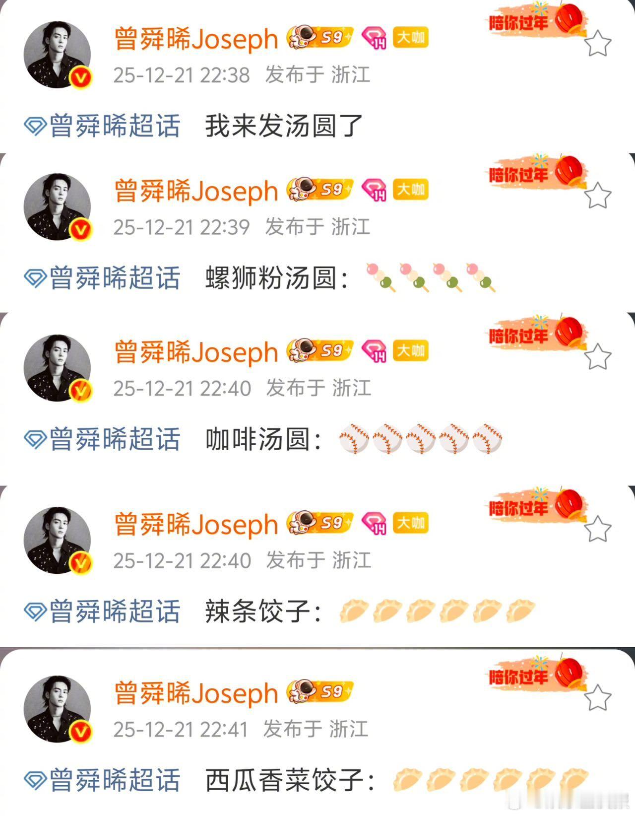 曾舜晞西瓜香菜饺子螺蛳粉汤圆 曾舜晞的冬至整活了,香菜螺蛳粉汤圆算什么?可以直接开黑暗料理联名店!这波创意冬至被哥玩明白了(狗头保命)