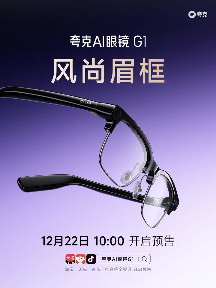 阿里千问C端事业群成立后,在AI硬件领域动作加速。12月22日,夸克AI眼镜正式开启两款新品预售,其中G1风尚眉框款最低到手价仅1999元,可大幅降低AI随身门槛。同时,热销的旗舰款S1系列也推出全新圆框玳瑁配色,为消费者提供更多选择。