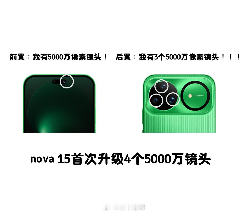 nova15首发搭载前置红枫镜头前后双红枫影像太绝了!四颗5000万镜头覆盖全焦段,这真是能拍出自然好肤色,已经按捺不住想入手。nova15首次升级至4个5000万镜头