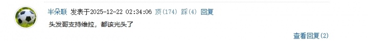 这不禁让人想起本场比赛维拉的对手——曼联的一位球迷,外号“蓄发哥”。他之前号称“曼联不五连胜不理发。”有位吧友在评论区幽默写道,若蓄发哥支持维拉,早就光头了。