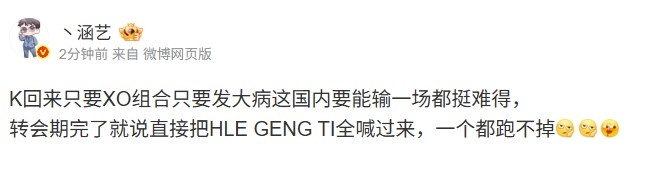 涵艺:K回来BLG国内输一场都挺难 直接把HLE GENG T1全喊过来