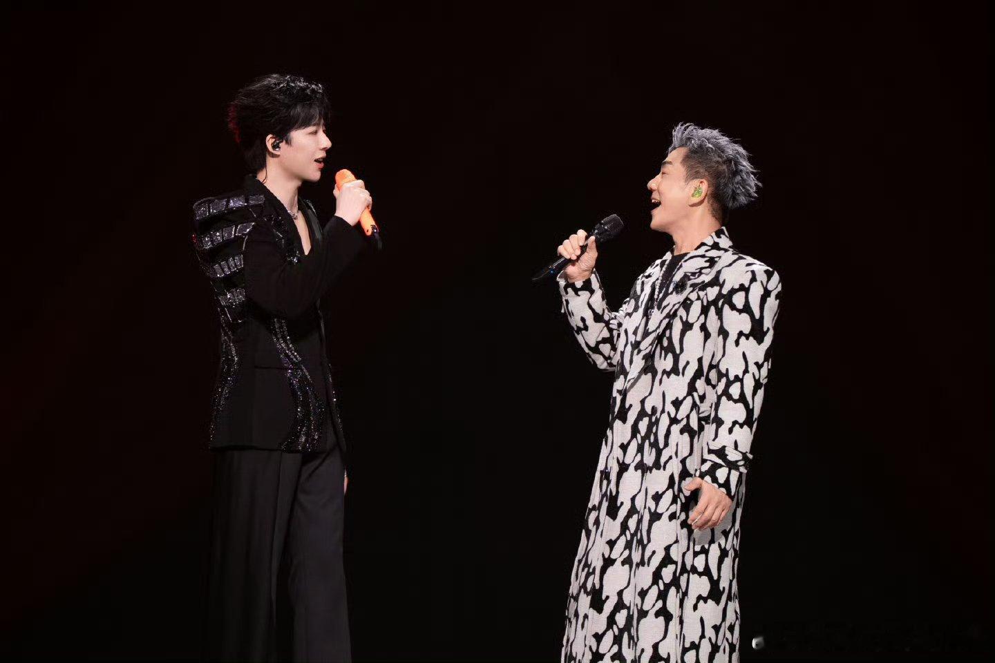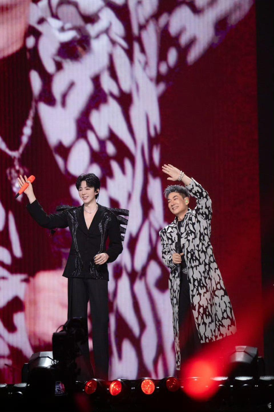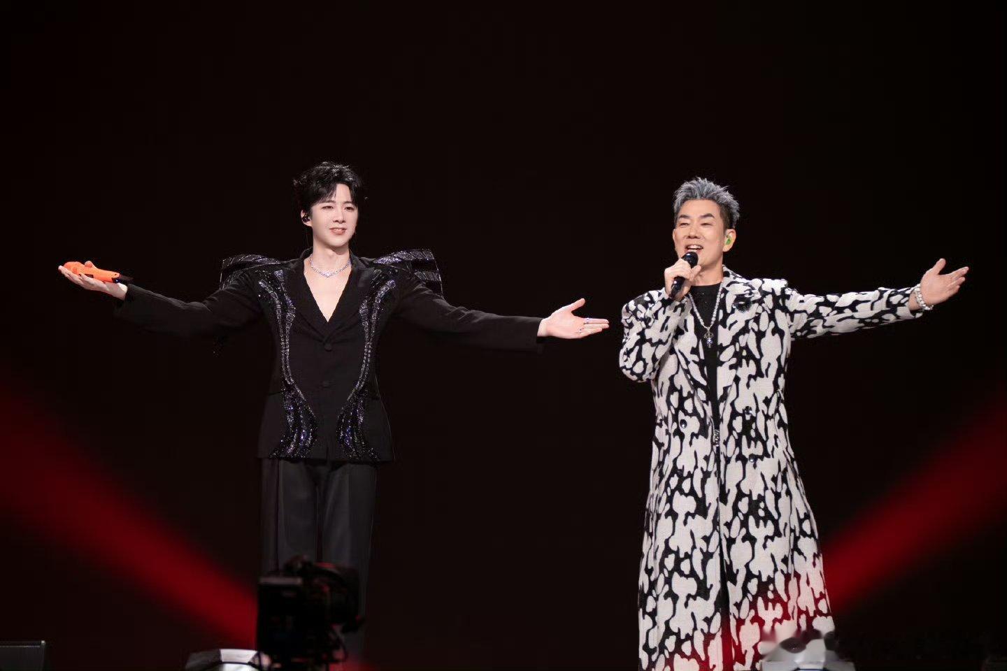 刘宇宁晒与任贤齐舞台合影,感谢任贤齐来他的家乡。