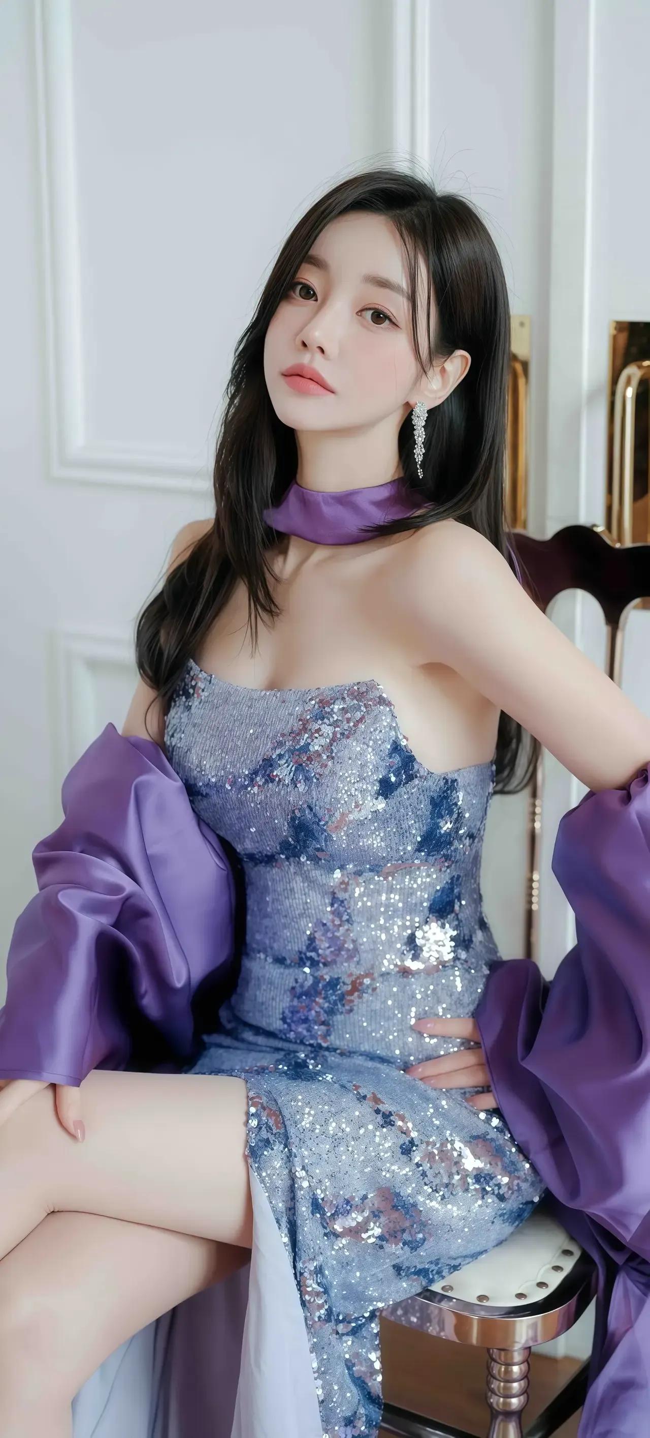 黑裙美人卧躺,光影交错,尽显优雅与神秘。张予曦!
