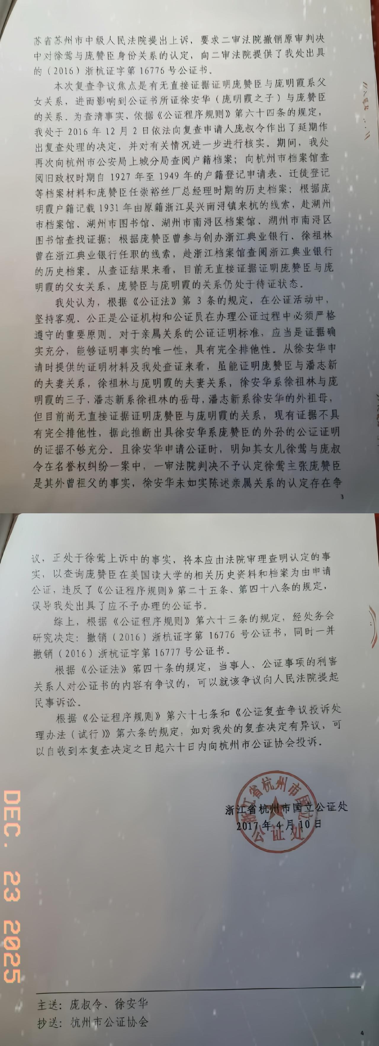 没血缘也敢抢国宝?1份假公证戏精附体,网友怒了! 离谱到刷新三观!有人竟靠编族谱办假公证,硬蹭豪门抢137件国宝? 庞叔令授权声明一锤定音!把徐莺造假的弯弯绕全扒了!她编了一套复杂人物关系,说自己是庞赞臣外曾孙女,还扯出“庞赞臣是庞莱臣堂兄弟”的谎话,结果被一审判决打脸——压根没血缘! 更绝的是,她爸竟以查资料为由,在杭州上城分局办了亲属公证帮她上诉,可法院核查后发现,关键亲属关系没任何直接证据,庞氏族谱和1949年遗嘱更是实锤:庞莱臣根本没这堂兄弟! 网友辣评:“这哪是认亲,这是组团碰瓷文物啊!” 说实话,公证本是公信力底线,却被当成钻空子的工具,真让人后背发凉。 这事儿不光是个人造假,更提醒我们:文物是民族根脉,公信力不能有半点漏洞,只有把审核关焊死,才能守住祖宗留下的宝贝。你觉得该怎么杜绝这类乱象?上联:远看山有色,求下联… 上联:有缘千里来相会;诚邀下联