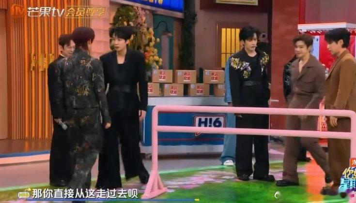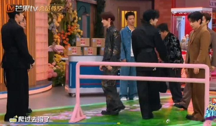 丁程鑫你看看何老师的表情你好星期六 丁程鑫又整出搞笑新花样!继卡门主动卡栏杆,腿