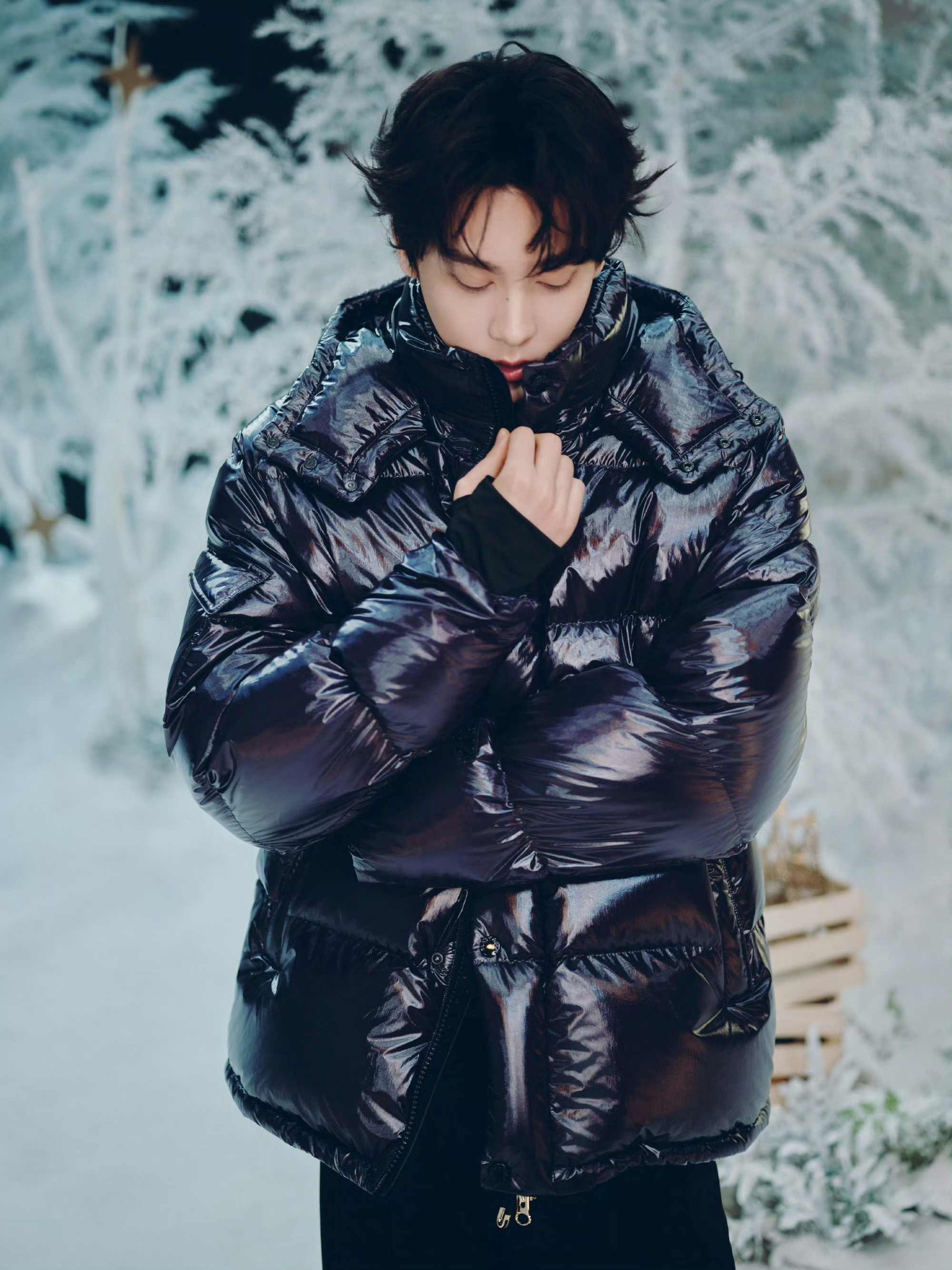 田栩宁| 直播活动造型出图,身穿品牌黑色羽绒服,all black look 大气简约,冷冽俊朗,全球品牌代言人还是太权威❄️