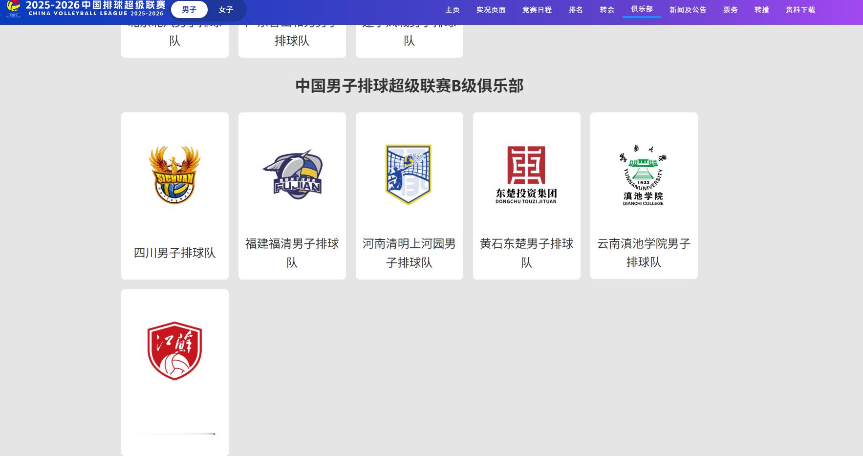 排协官网今年也是越做越好了,继续保持2025-2026中国男排超级联赛