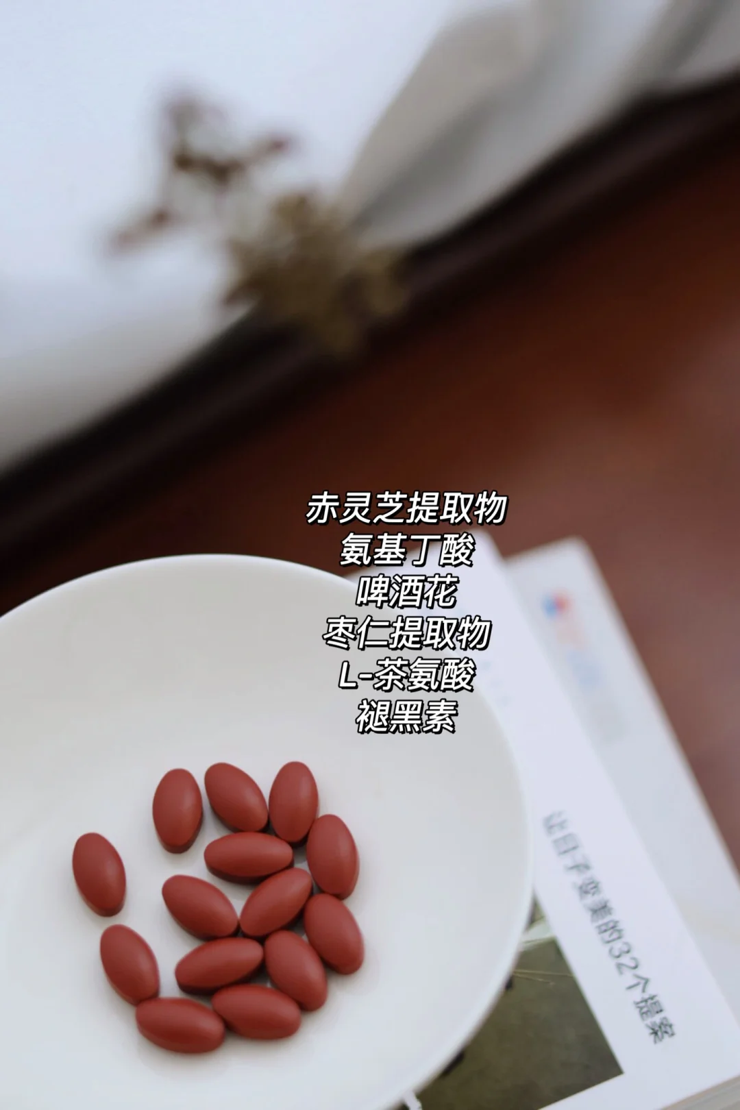 茶氨酸,能舒缓身体,助情绪稳定,平常码字,经营社群,压力都是免不了。再就是啤酒花提取物,能安.神和抗氧化。