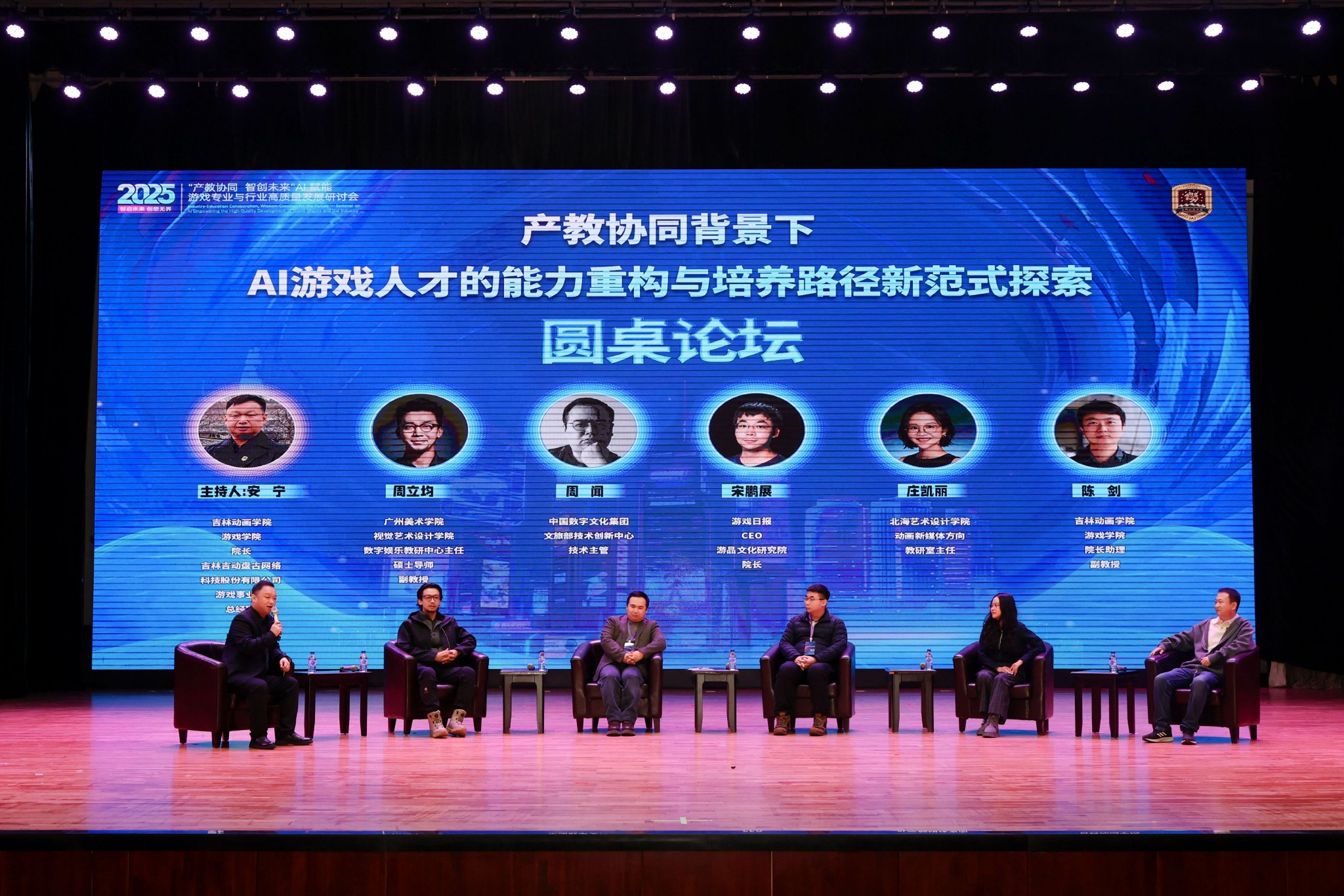 同期举办的“产教协同·智创未来”——AI赋能游戏专业与行业高质量发展研讨会同样精彩纷呈。活动邀请到全国高等院校计算机基础教育研究会会长、教育部动画与数字媒体教指委秘书长、中国传媒大学动画与数字艺术学院党委书记、教授黄心渊,中国数字文化集团、文旅部技术创新中心技术主管周闻,山东工艺美术学院数字艺术与传媒学院副院长、教授张光帅,吉林艺术学院动漫学院副院长、教授邵兵,长沙师范学院现代游戏产业学院直属党支部书记、副院长、副教授、湖南省委宣传部游戏版号审读专家王至,清华大学艺术与科技创新基地导师、数字娱乐实验室主任林宾华,广州美术学院视觉艺术设计学院数字娱乐教研中心主任、副教授周立均,澳门科技大学人文艺术学院助理教授李佳琪,游戏日报CEO、游品文化研究院院长宋鹏展,天空盒创始人郑琦等众多业内权威人士。他们带来了九场主旨报告和一场圆桌对话,以产教协同为纽带,以智创未来为目标,共同探索AI赋能游戏专业与行业高质量发展的新路径、新机遇。