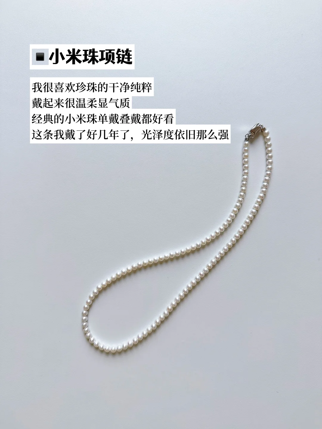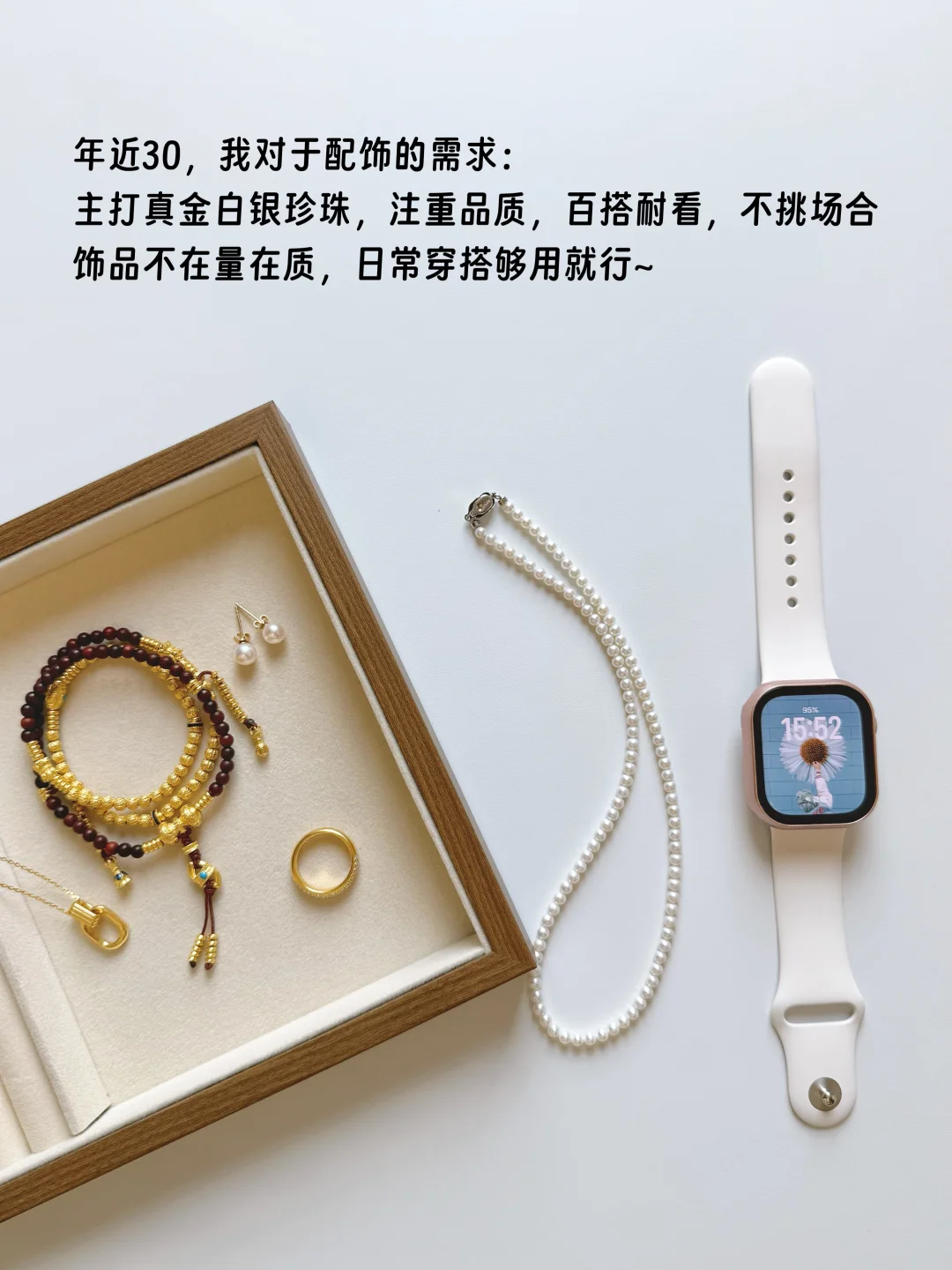年近30,我对于配饰的需求是: 只买真金白银珍珠,宁愿少一点,也要好一点 我的饰品数量不多,但都是不挑场合,100%上身率,喜欢戴的: - ▪️黄金手串 ▪️几何项链 ▪️小米珠项链 ▪️繁星戒指 ▪️珍珠耳钉 ▪️iwatch 电子手表 - 谢谢你的时间,下次见~ [红色心形R][红色心形R][红色心形R] 我是精简生活,一心搞钱,百万退休计划 盲目乐观|混沌前行|清醒赚钱 ㊗️一起变得更加有钱、有爱、有自己