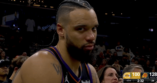 第四节比赛中,太阳末节领先湖人30分,狄龙直接坐到底线端观众席,狄龙出战24分钟砍下25分。