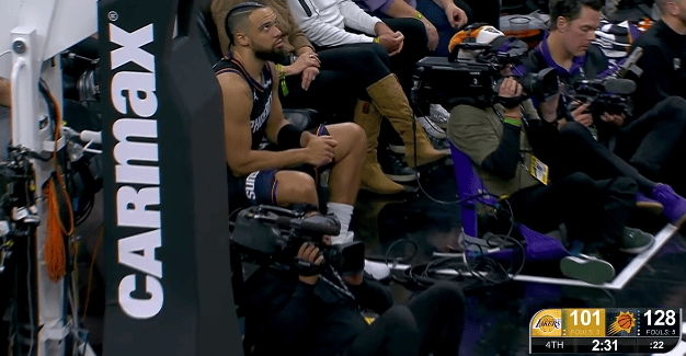 整活!太阳末节领先湖人30分,狄龙直接坐到底线端观众席