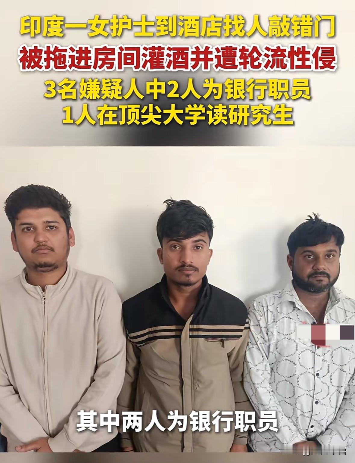 印度QJ又上“国际头条”了 近期一位印度女护士去酒店找人,谁知跑错了房间,可是没想到敲开门后居然被里面的三个年轻人给拉进去了 她被轮流灌酒,可是噩梦远不止于此,随后她就被这三个人给轮流性侵了 事后经过警方调查才知道,这三个人都是印度“贵族”,其中两人是银行职员,另一人是顶尖大学在读研究生 按照印度种姓制度,他们三个肯定都是所谓的“贵族”人员,但干的却不是贵族该干的事 “三哥”看来对于QJ这种事不分层次,可是为什么屡禁不止呢?