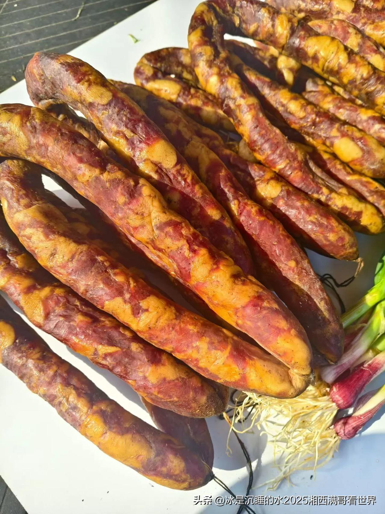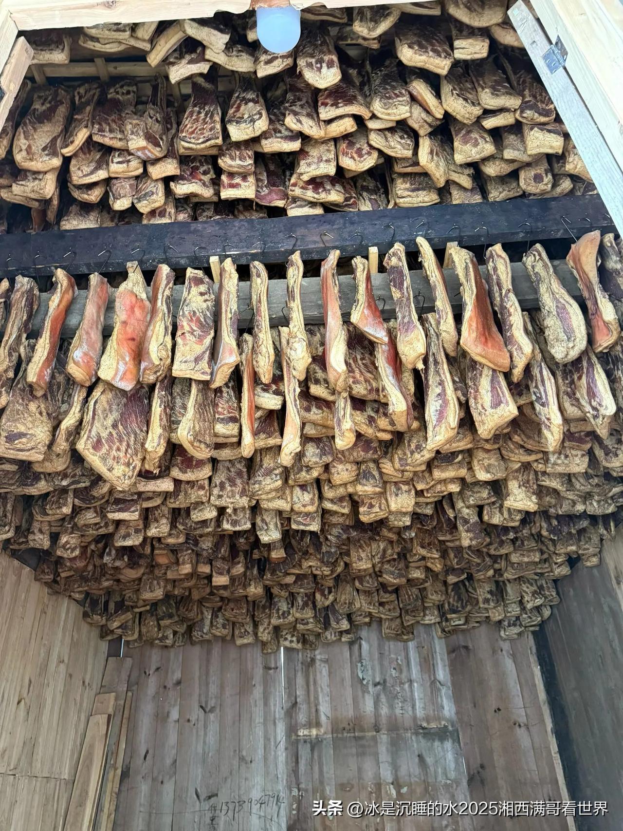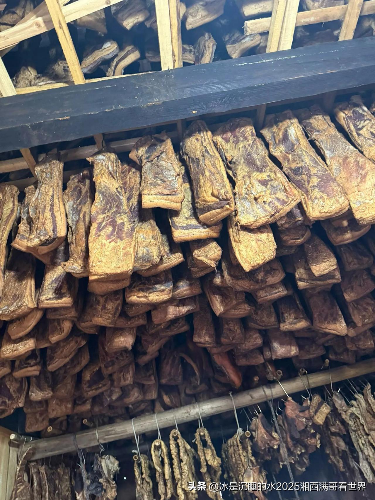 生活手记 冬至过后,天寒地冻,就到了腌制腊肉的时候,湘西山区家境富裕的老百姓就到农贸市场挑选新鲜猪肉,回去处理干净做腊肉、灌香肠,犒劳忙碌一年的自己与家人。 ​​​当然,现在的饲料猪出栏快,生长周期短,味道赶不上以前吃苞谷、剩饭剩菜的本地黑猪肉香,也是一个遗憾的事。湘西山区的正宗腊肉还有一个关键,就是要熏得好。腊肉挂在堂屋里,每天烧柴搞饭菜的烟熏火燎是腊肉好吃的秘方。腊肉经过时间的洗礼,也愈发的油亮紧实,切开可以看见漂亮的纹理,并且是晶莹透亮,下油锅翻炒,满屋子飘香。