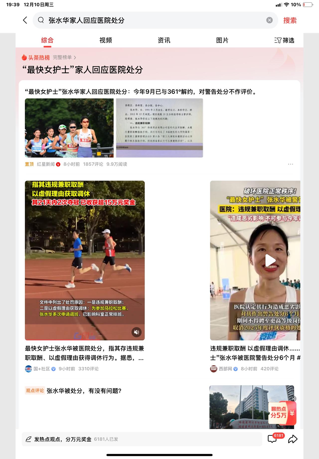 福建医科大学附属第一医院的张水华,一边违规给361°代言拿酬劳,一边编假话调休跑去跑马拉松,既坏了单位规矩,又给科室添了麻烦。最终落得警告处分6个月、今年评优资格取消的结果——职场里的“小聪明”,终究要为违规违纪买单。 你那么喜欢跑马拉松,又有那个攀登高峰的实力,为何不辞职做一个专业马拉松运动员?既然还在医院做护士,业余爱好就不能影响本职工作,这是做人做事的底线! 你支持吗?