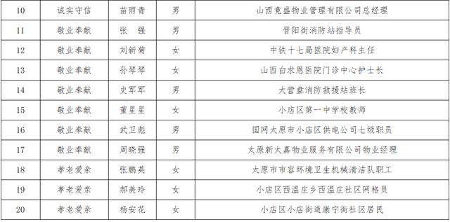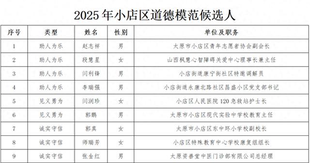 2025年小店区道德模范候选人名单公示